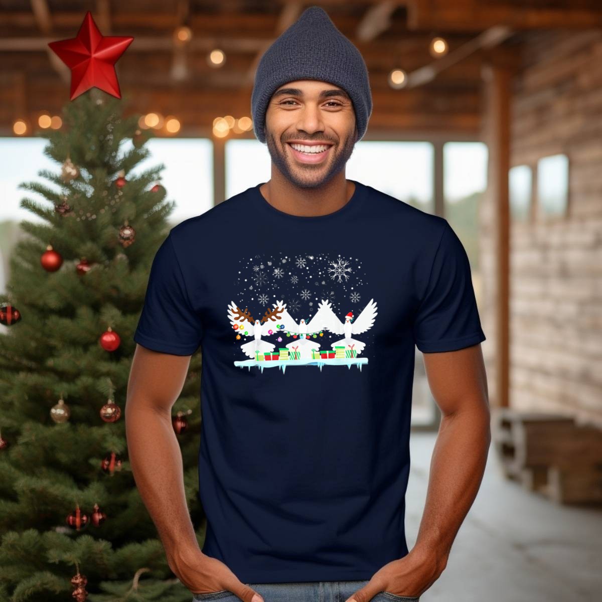Celebrate the festive season in style with our Pigeon Reindeer Antlers Santa Hat Christmas Lights Snowflakes T-Shirt! This whimsical design is perfect for animal lovers and holiday enthusiasts alike, making it an ideal choice for casual gatherings, themed events, or just spreading some cheer during the holidays. Crafted with care and printed in the USA, this shirt combines fun and comfort, ensuring you stand out while enjoying the festivities.
