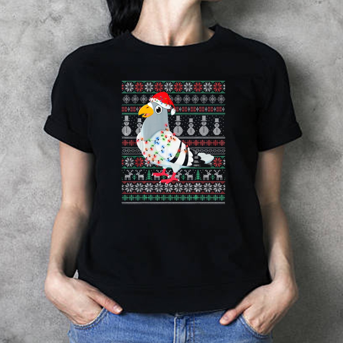 Get ready to spread some festive cheer with our Pigeon Ugly Christmas Sweater With Santa Hat Lights And Holiday T-Shirt! Perfect for bird lovers and holiday enthusiasts alike, this fun and quirky design adds a playful touch to your casual wear. Ideal for themed events, family gatherings, or just a cozy day at home, this shirt is sure to be a conversation starter and make your holiday season even brighter!