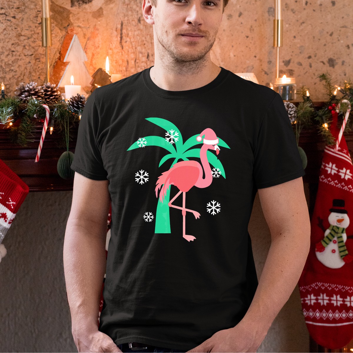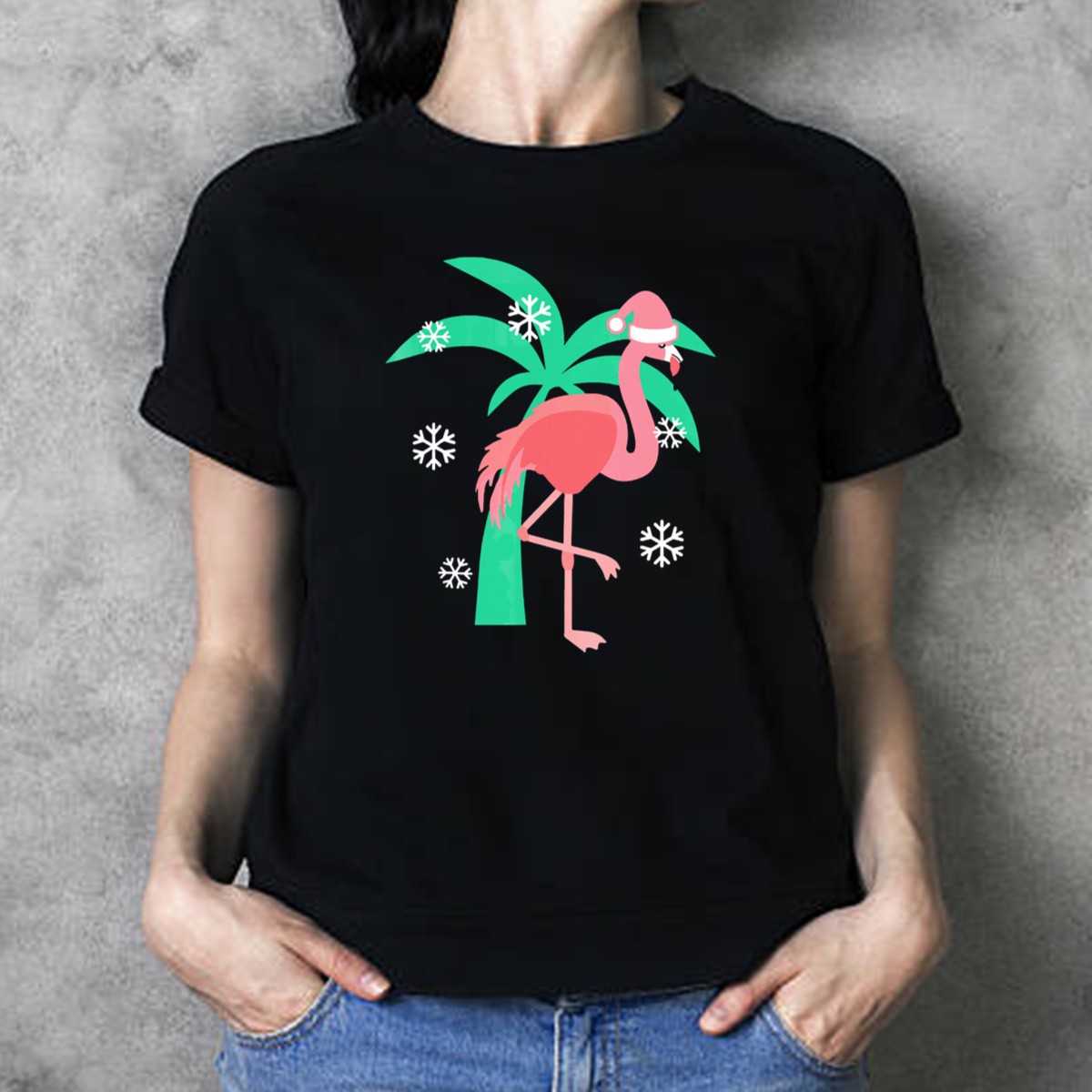 Be the first to review “Pink Flamingo With Santa Hat And Palm Tree Snowflakes Christmas T-Shirt”