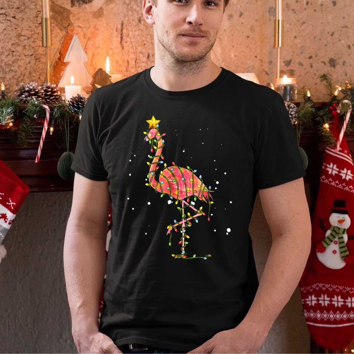 Embrace the holiday spirit with our delightful Pink Flamingo Wrapped In Festive Christmas Lights T-Shirt! Perfect for those who love to celebrate in style, this fun and vibrant design is ideal for casual outings, themed events, or simply adding a splash of joy to your daily wear. Made for fans who appreciate a unique twist on classic holiday attire, this shirt is a must-have for any festive occasion.