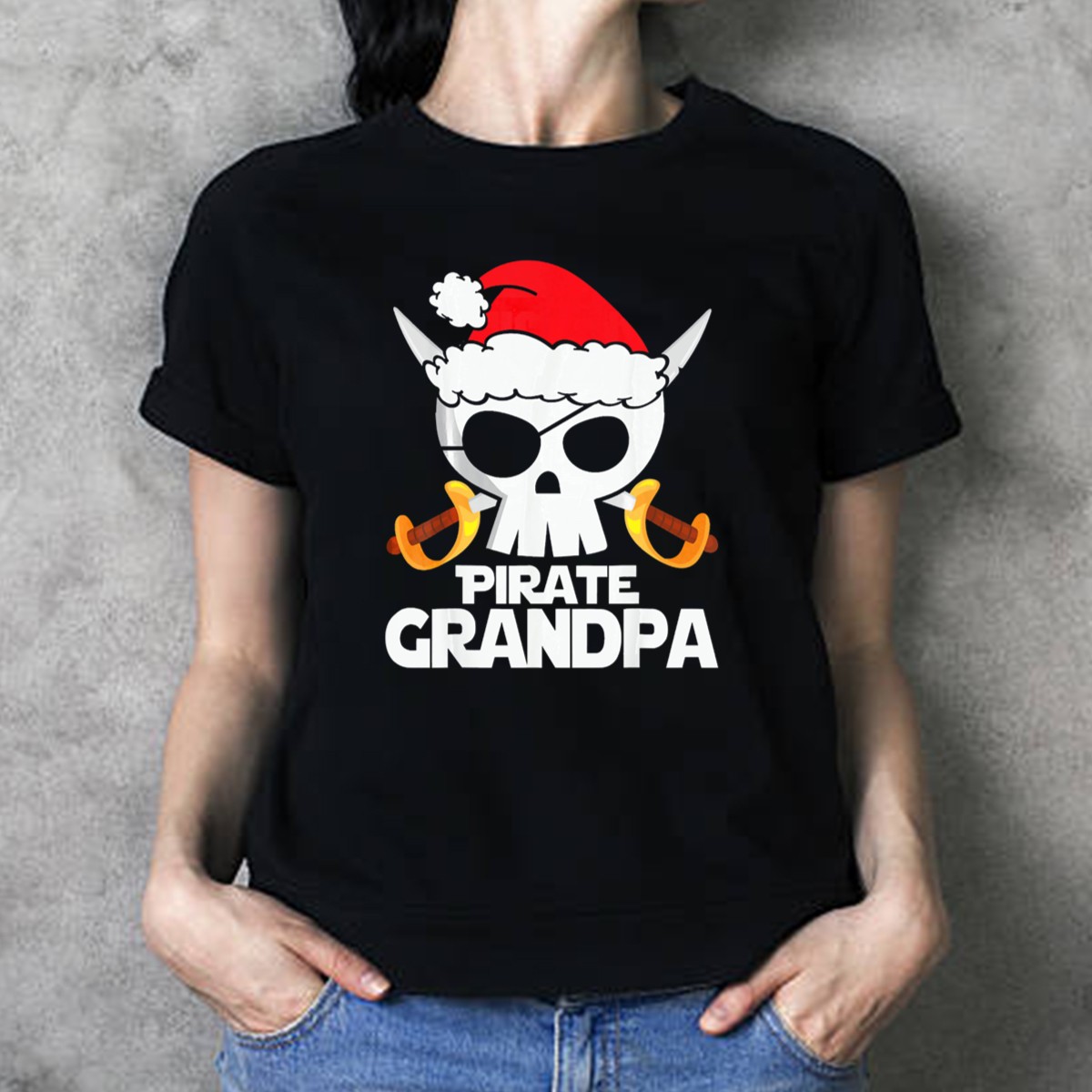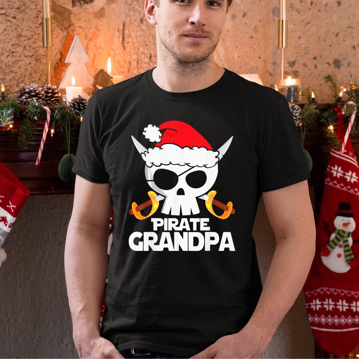 Celebrate the holiday spirit with a twist of humor in our Pirate Grandpa Santa Skull With Swords Christmas T-Shirt! This unique design is perfect for those who love to add a dash of fun to their festive wardrobe. Whether you’re attending a themed event, enjoying a casual get-together with family, or just looking to bring some cheer into your daily wear, this shirt is sure to be a conversation starter. Made with care in the USA, it combines a playful pirate theme with the joyous essence of Christmas, making it an ideal gift for the fun-loving grandparent in your life.