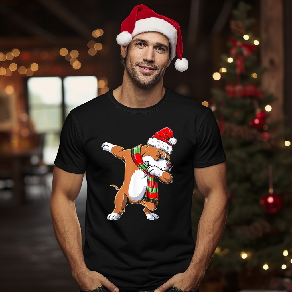 Celebrate the holiday season with our Pit Bull Dabbing In Santa Hat And Christmas Scarf T-Shirt! Perfect for dog lovers and festive spirits alike, this fun and quirky design brings a playful touch to your casual wear. Ideal for themed events, family gatherings, or simply spreading cheer during the holidays, this shirt is a unique blend of comfort and style that showcases your love for pets and the festive season. With its fan-made design proudly printed in the USA, it’s a must-have addition to your all-season wardrobe.