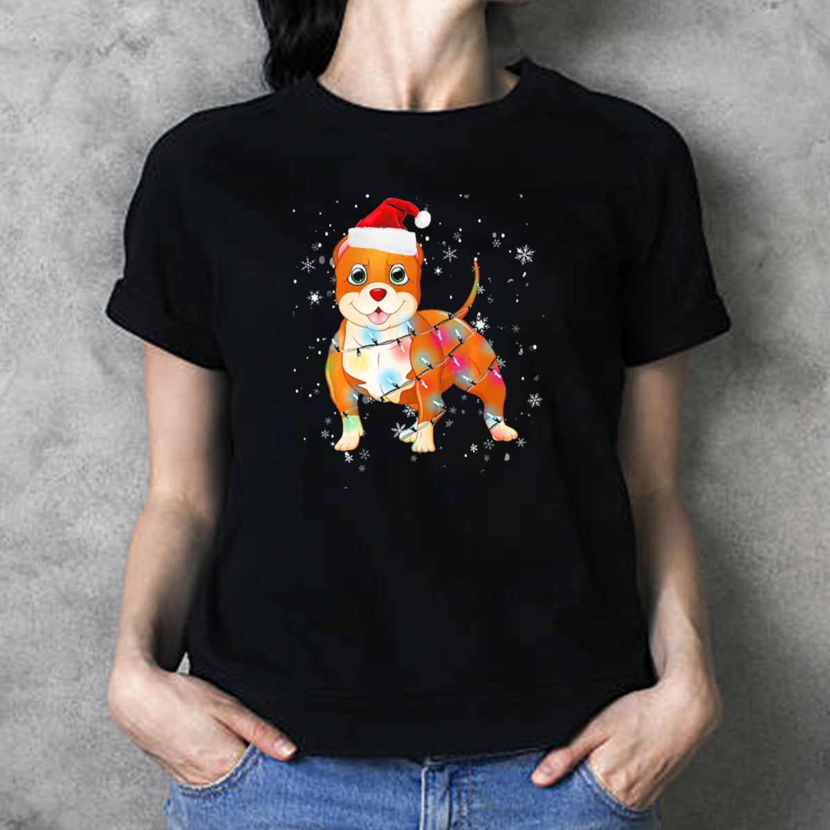 Be the first to review “Pit Bull Puppy Santa Hat With Christmas Lights And Snowflakes T-Shirt”