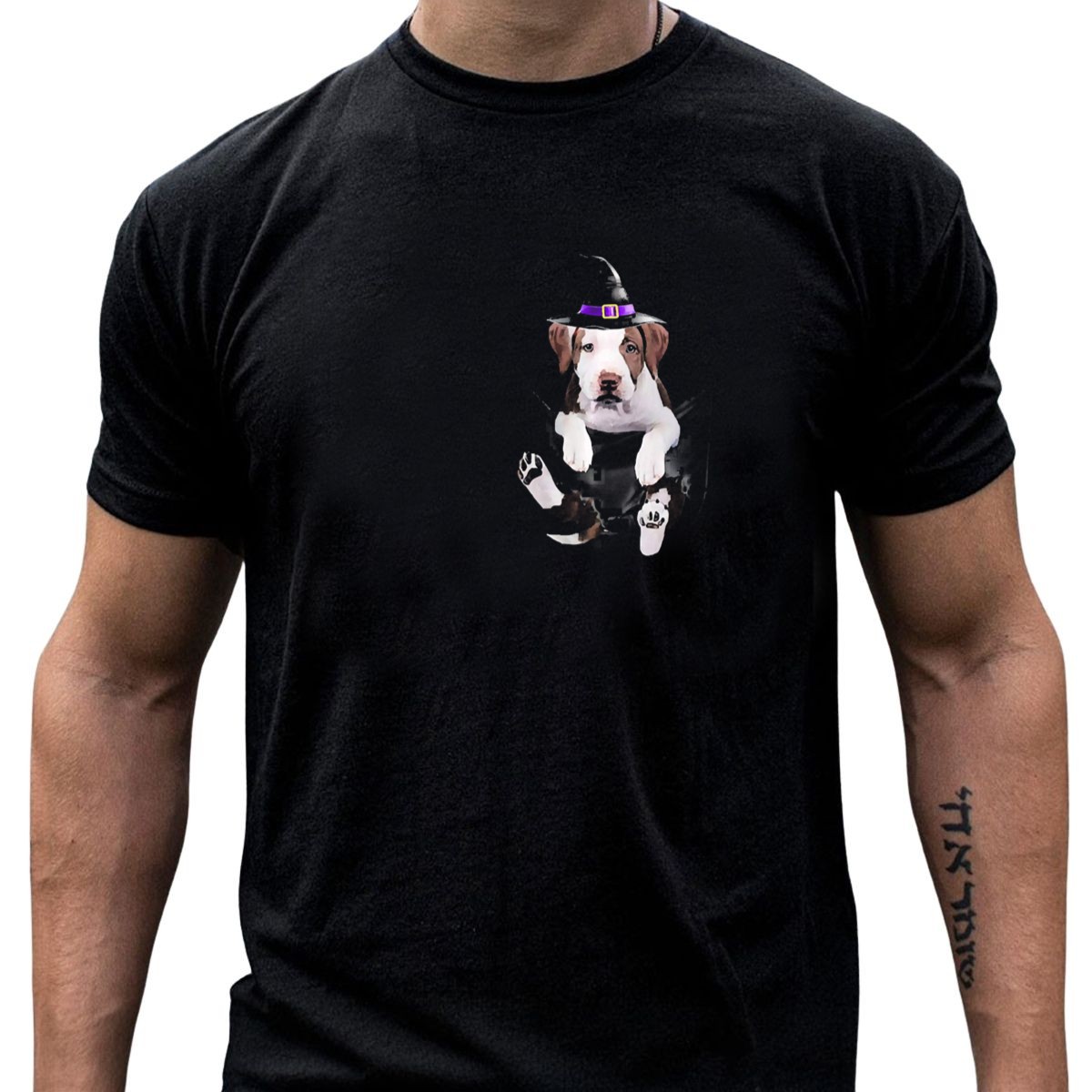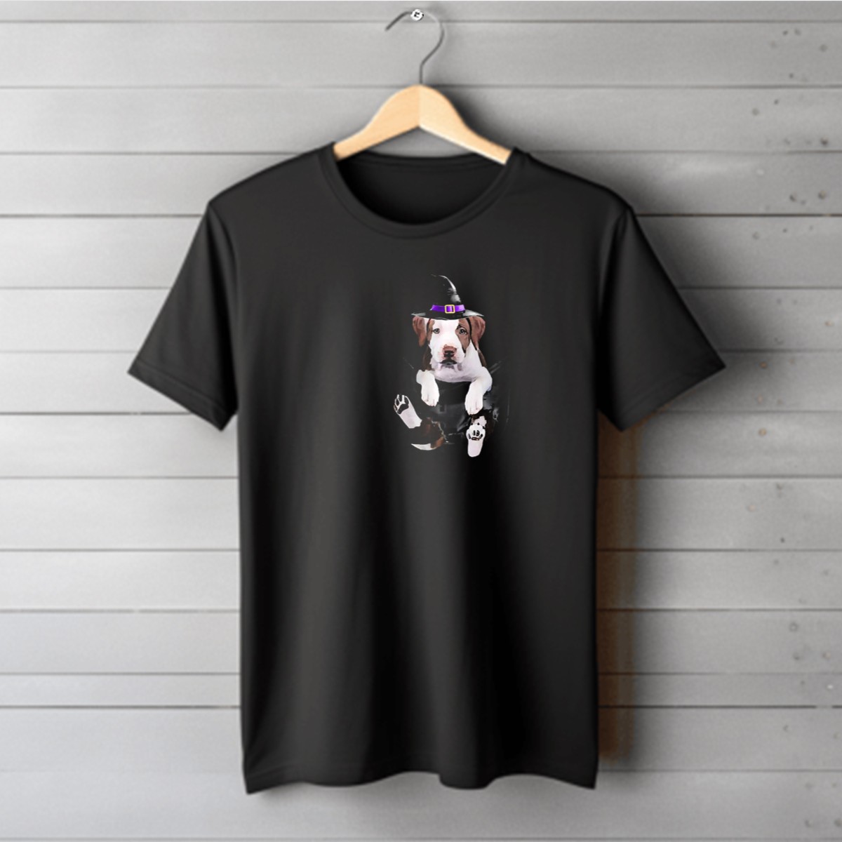 Embrace the spooky season with our delightful Pit Bull Puppy With Witch Hat Halloween Costume T-Shirt! Perfect for dog lovers and Halloween enthusiasts alike, this charming tee features an adorable graphic that captures the playful spirit of your favorite furry friend dressed up for the occasion. Ideal for casual outings, themed events, or just lounging around, this shirt is sure to turn heads and spread smiles wherever you go. Made in the USA, it’s not just a shirt; it’s a celebration of your love for pets and Halloween fun!