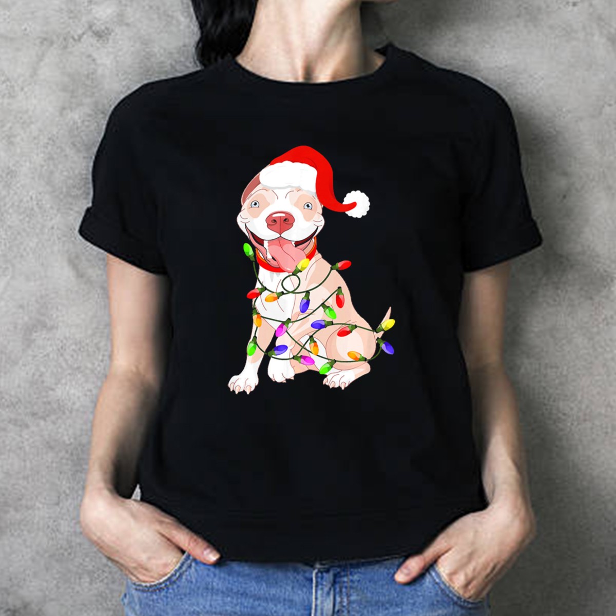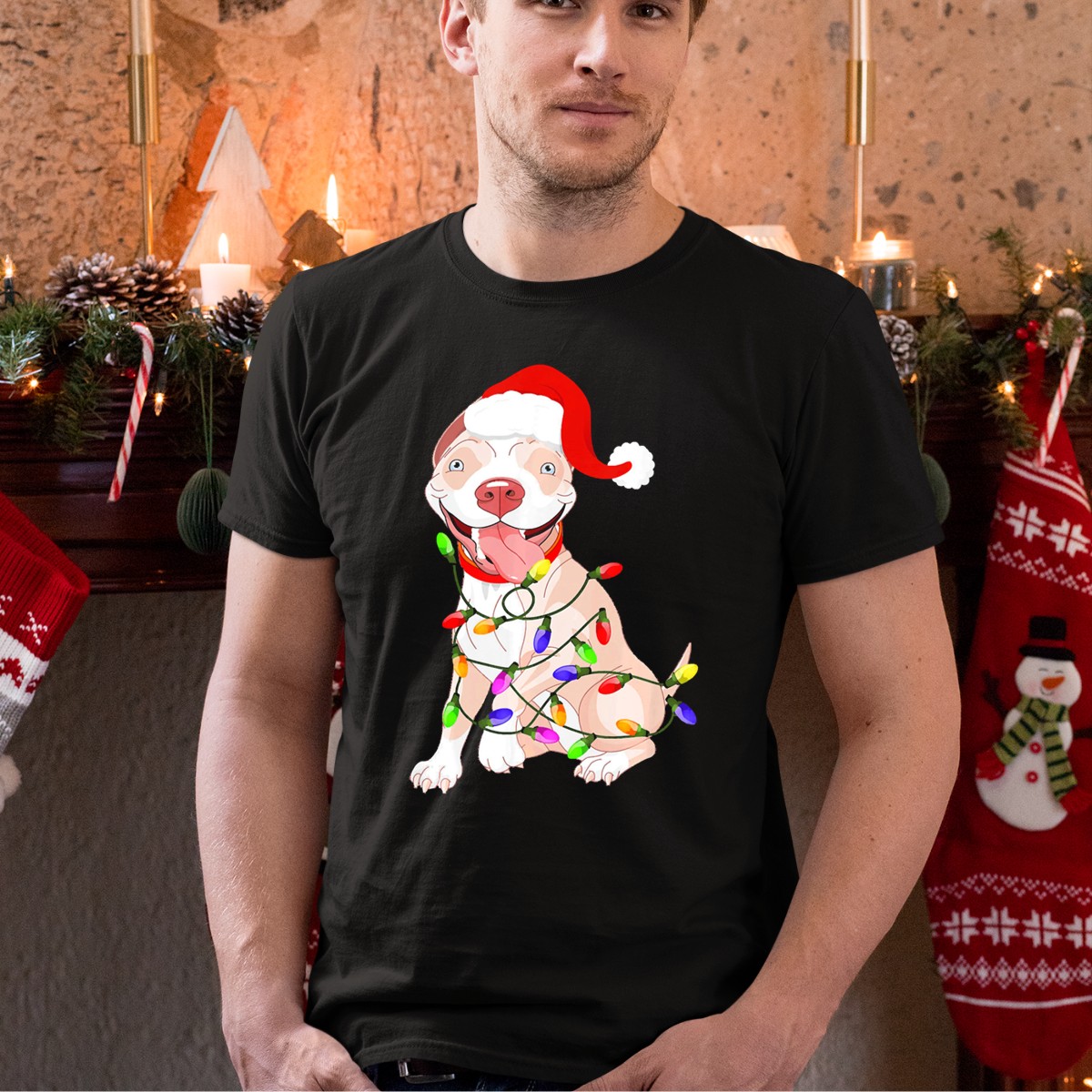 Celebrate the holiday season with our delightful Pit Bull Wearing Santa Hat And Christmas Lights T-Shirt! Perfect for dog lovers and festive gatherings, this fan-made design adds a playful touch to your casual wear. Whether you’re attending a themed event, hanging out with friends, or just enjoying daily activities, this shirt will surely bring joy and smiles wherever you go. Made in the USA, it’s a unique way to showcase your love for both the holidays and your favorite furry friend!