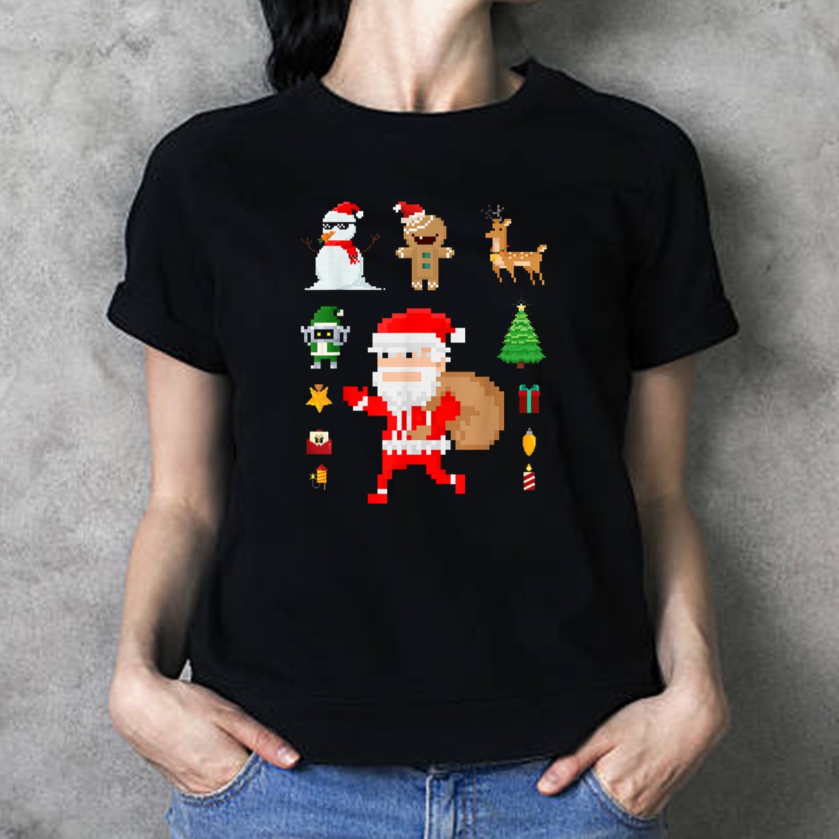 Pixel 8Bit Santa Claus Snowman Gingerbread Reindeer Christmas Tree Gifts Gaming T-Shirt