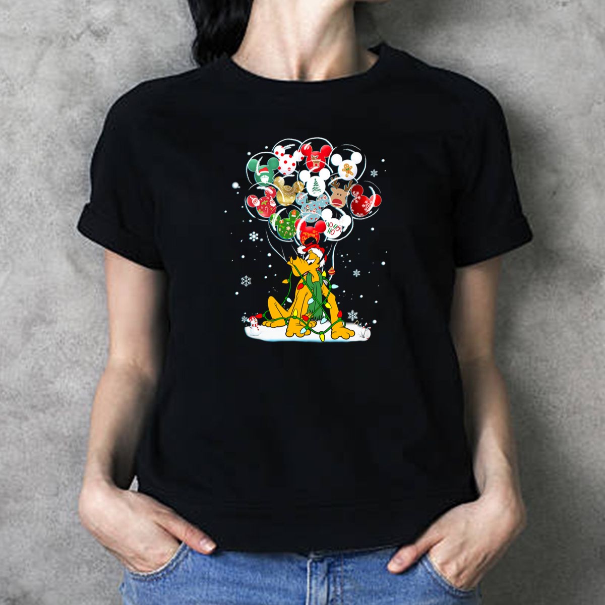 Be the first to review “Pluto Christmas Mickey Mouse Balloon Festive Snowflakes Holiday Scene T Shirt”