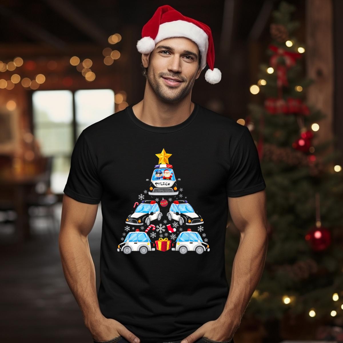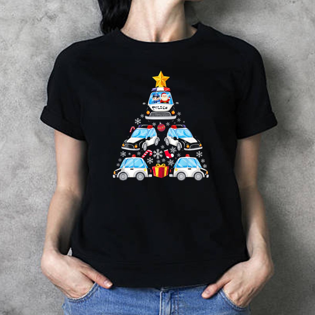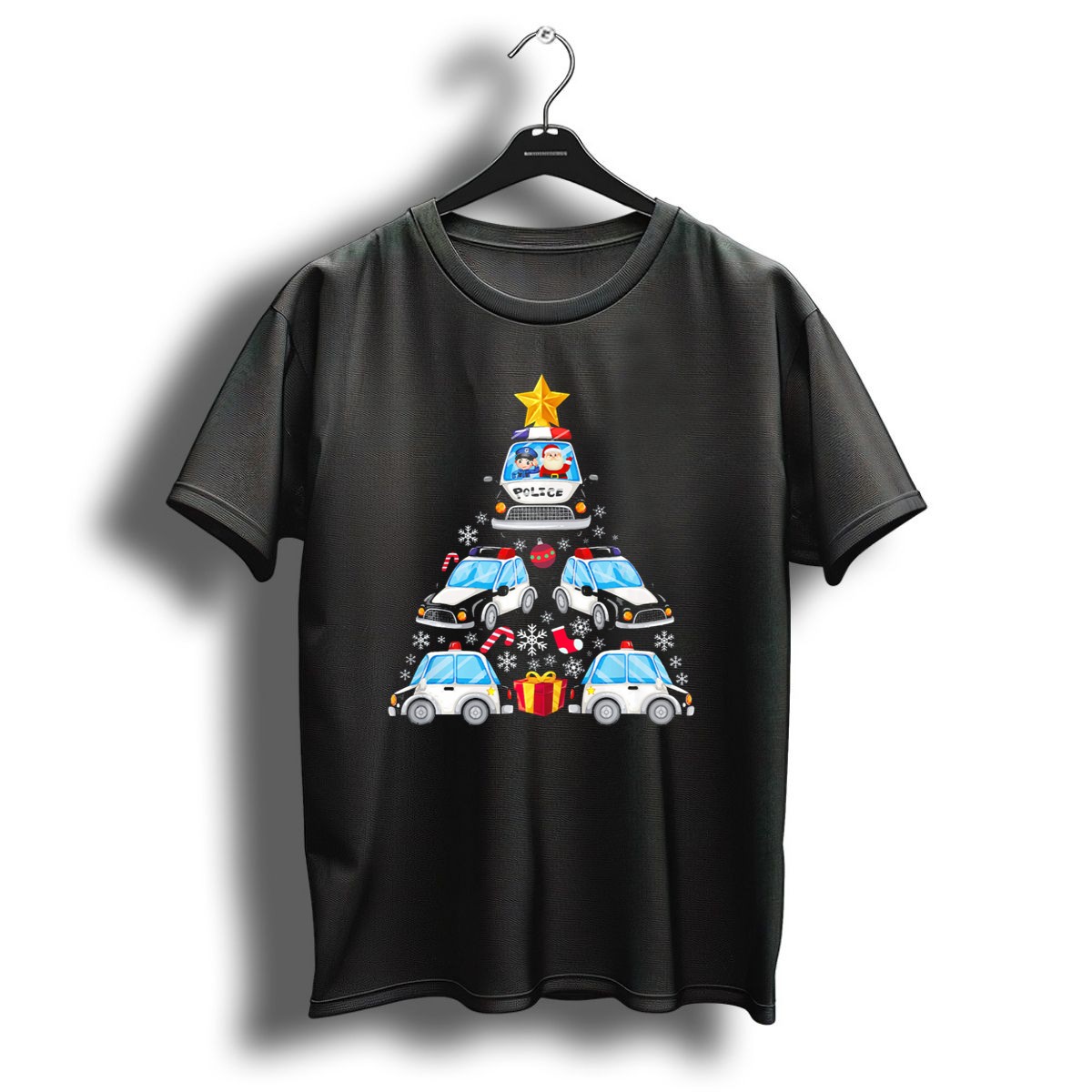 Celebrate the holiday season with our whimsical “Police Car Christmas Tree With Santa And Officer” T-shirt! Perfect for law enforcement enthusiasts and holiday lovers alike, this fan-made design brings festive cheer and a sense of community. Whether you’re attending a themed event, spending time with family, or just enjoying casual outings, this shirt is your go-to choice for spreading joy and showcasing your pride in a fun way.