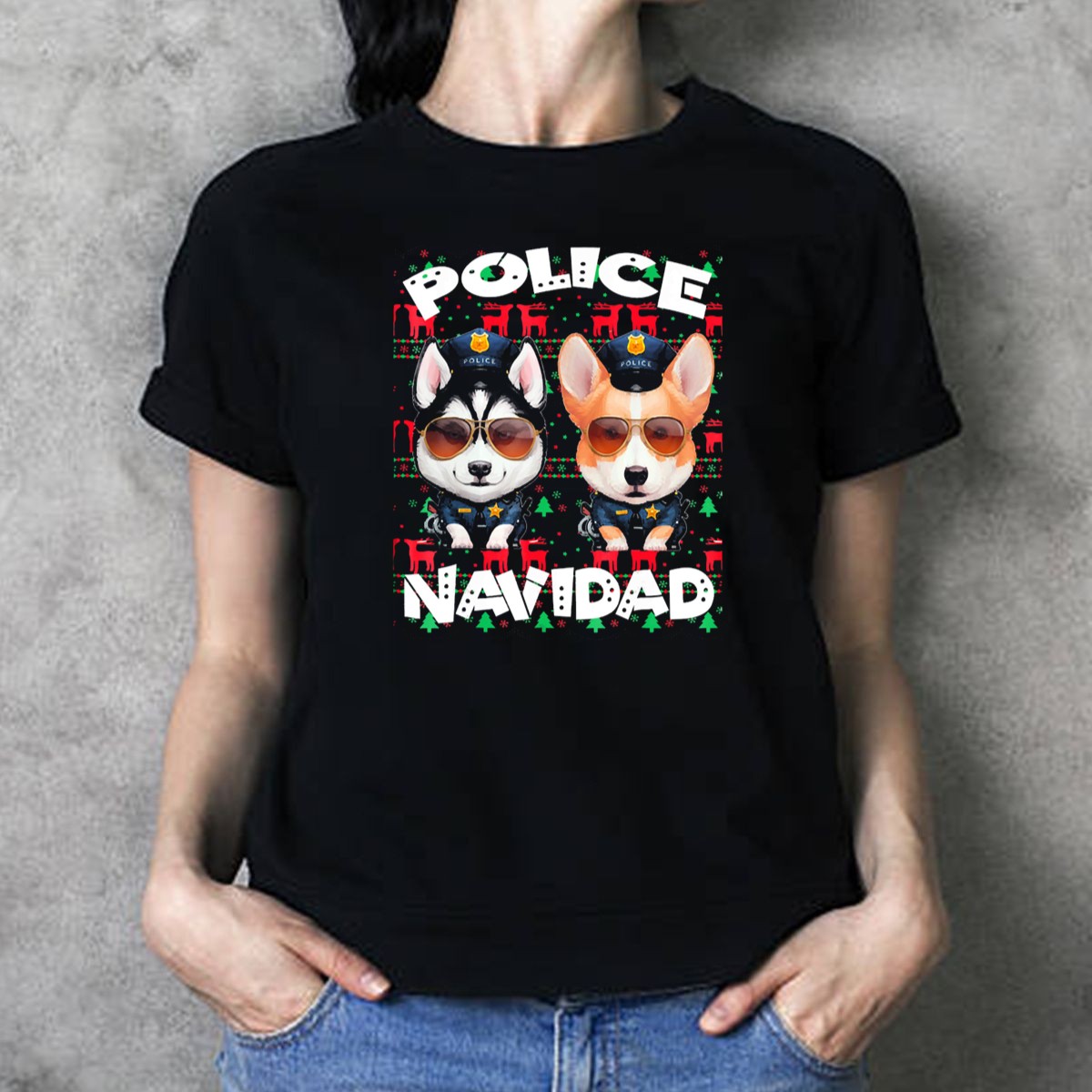 Celebrate the holiday season with a twist of humor and style in our Police Navidad Ugly Christmas Dog Cops With Sunglasses T-Shirt! This unique fan-made design is perfect for dog lovers and those who enjoy a playful take on festive fashion. Ideal for casual wear, themed events, or just spreading holiday cheer, this shirt is sure to turn heads and spark conversations wherever you go. Made and printed in the USA, it combines comfort with a fun, eye-catching graphic that showcases your love for dogs and the holiday spirit.