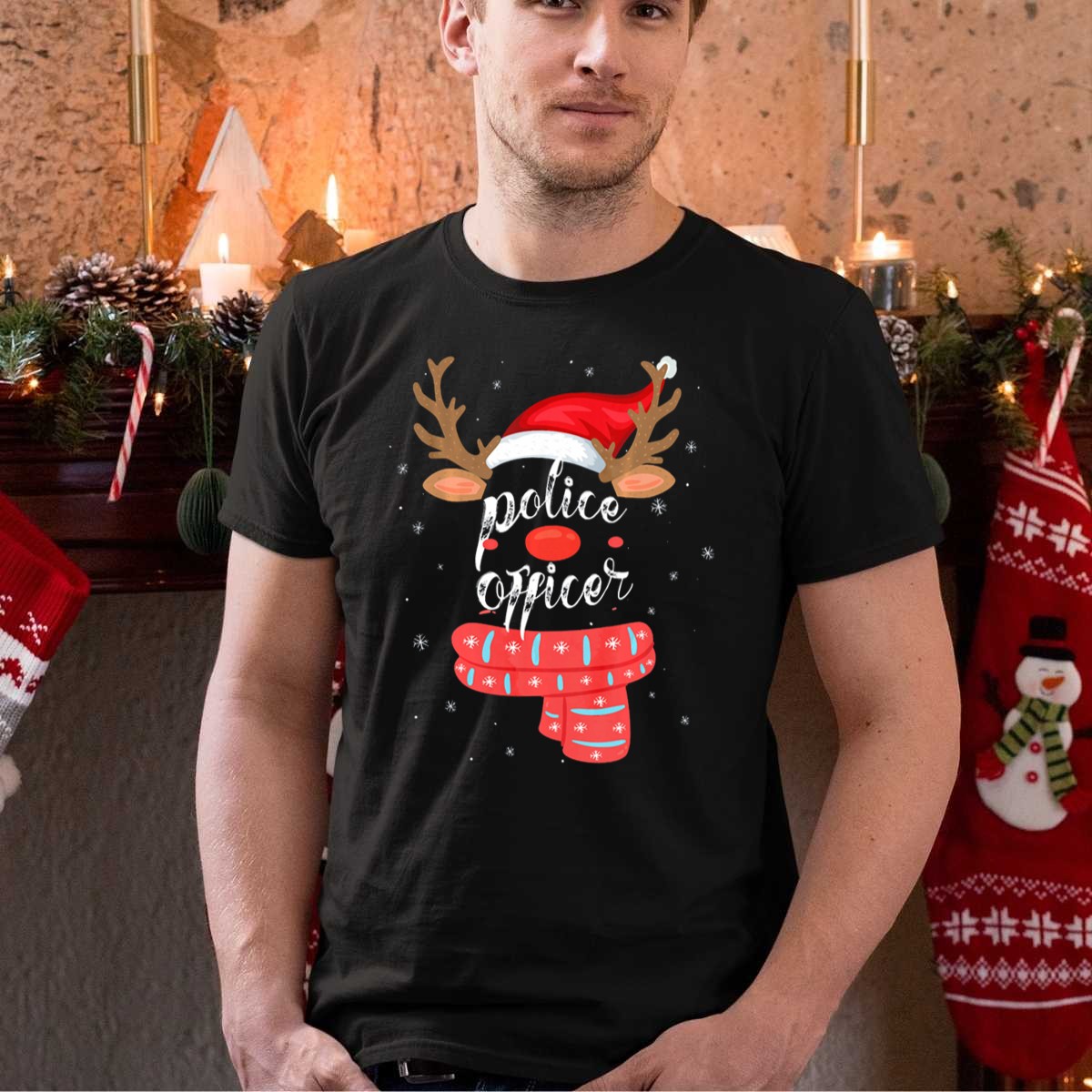 Celebrate the festive season with our Police Officer Reindeer Christmas T-Shirt, a perfect blend of holiday cheer and homage to our dedicated law enforcement. This fan-made design features a whimsical reindeer donned in a police hat and scarf, making it an ideal choice for casual wear, themed events, or daily outings during the holiday season. Crafted for comfort and style, this shirt is sure to bring a smile to your face and those around you, all while showcasing your unique holiday spirit.