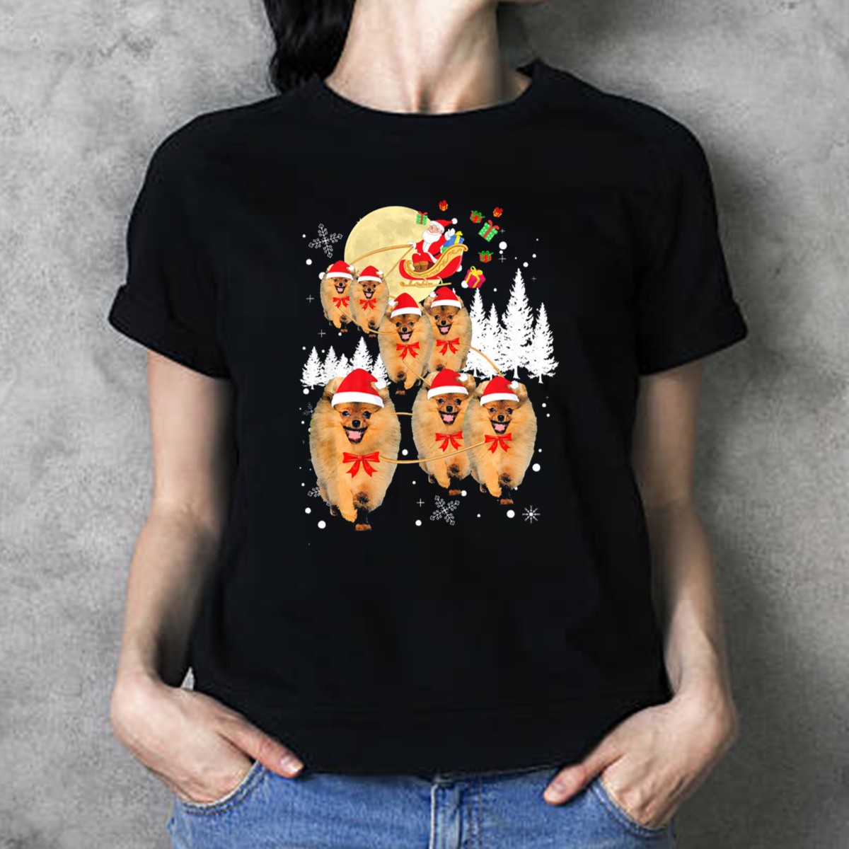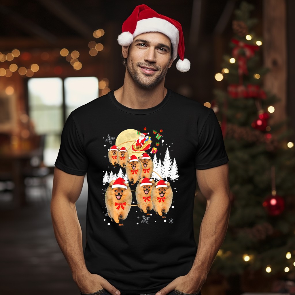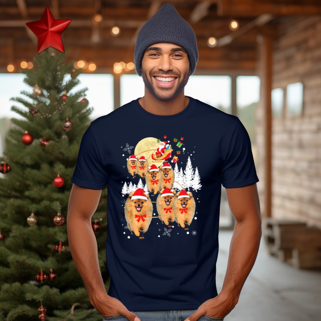 Celebrate the festive season with our Pomeranian Christmas Reindeer Moon T-Shirt! Perfect for dog lovers and holiday enthusiasts, this delightful design features an adorable Pomeranian amidst a magical winter scene complete with Santa’s sleigh and presents. Whether you’re attending a casual holiday gathering, themed events, or just want to spread some cheer during daily wear, this shirt is sure to bring smiles and joy. Made with care in the USA, it’s a unique addition to your holiday wardrobe!