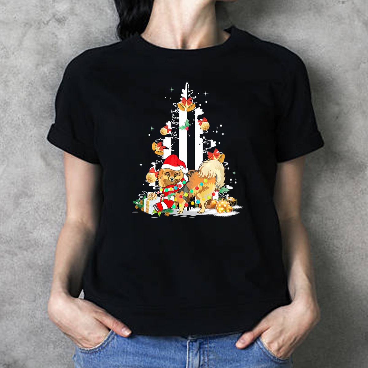 Be the first to review “Pomeranian Christmas Santa Hat And Gift Ornaments Usa Flag Tree T Shirt”
