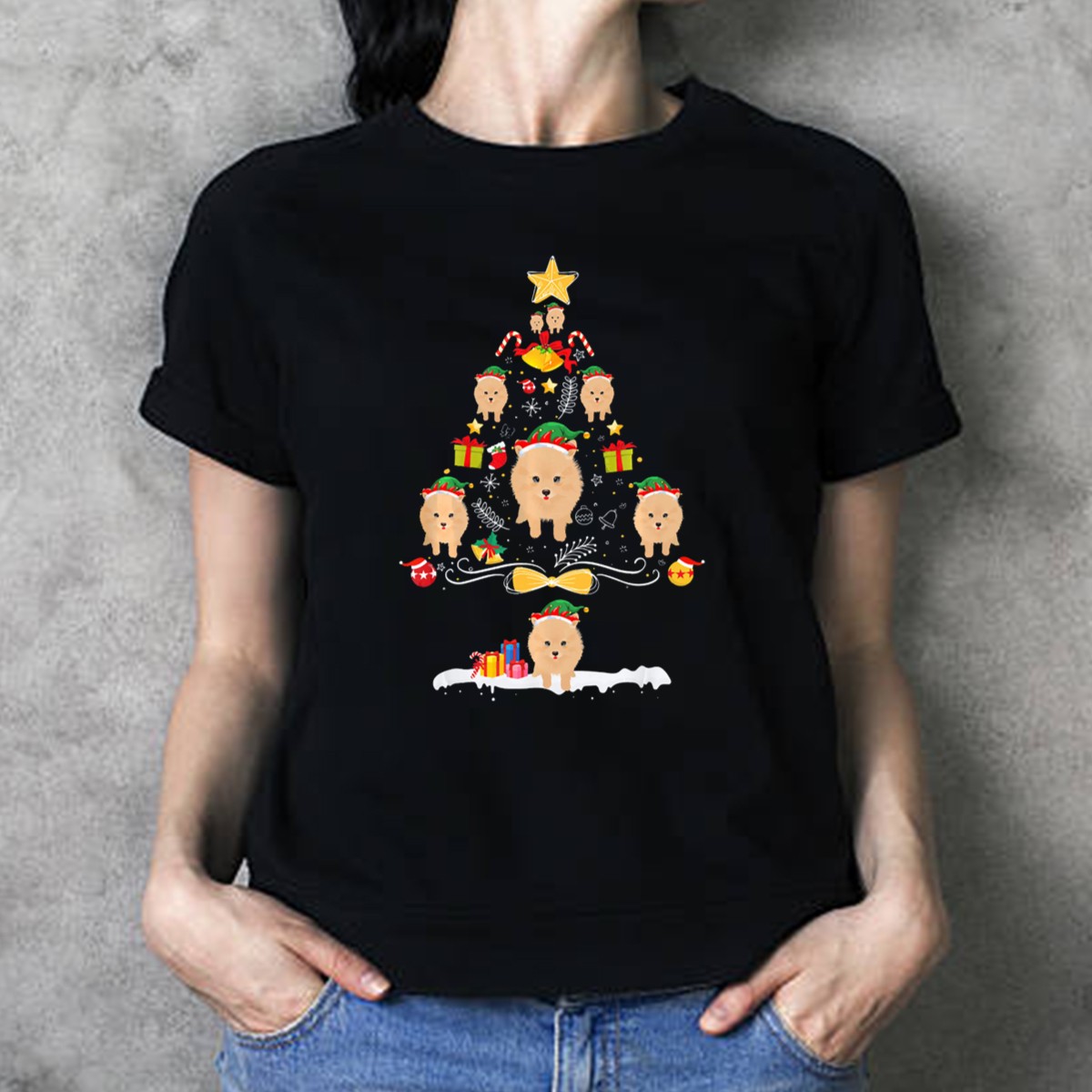 Be the first to review “Pomeranian Christmas Tree With Puppy Santa Hats And Gifts T-Shirt”