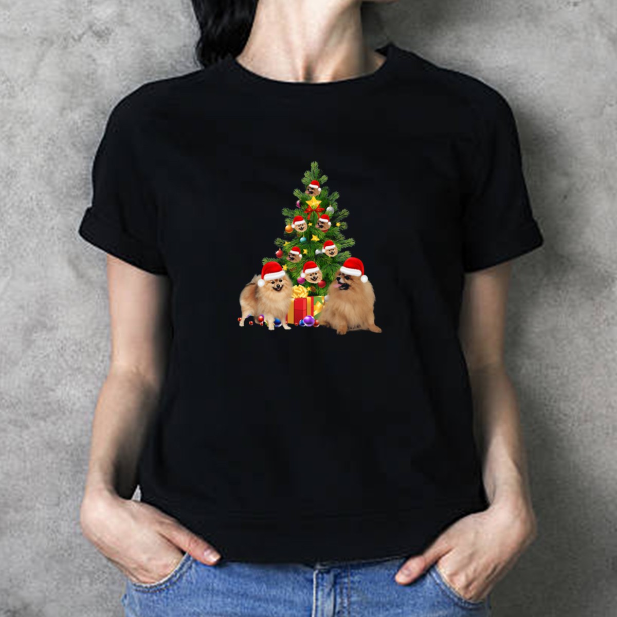 Be the first to review “Pomeranian Dog Santa Hats Christmas Tree With Presents And T-Shirt”