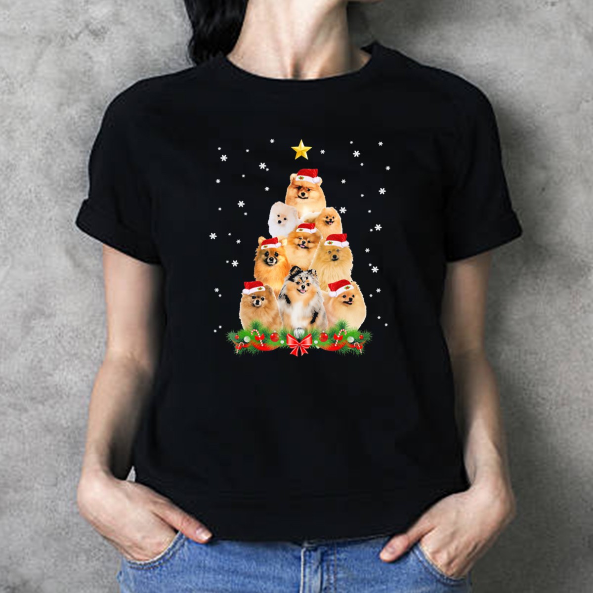 Spread holiday cheer with our Pomeranian Santa Hat Christmas Tree T-Shirt! Perfect for dog lovers and festive spirits alike, this playful design features an adorable Pomeranian nestled beneath a beautifully decorated Christmas tree, complete with a sparkling star and garland. Ideal for casual wear, themed events, or daily outings during the festive season, this shirt is a must-have for anyone looking to celebrate in style while showcasing their love for their furry friends. Proudly printed in the USA, it’s a unique addition to your holiday wardrobe!