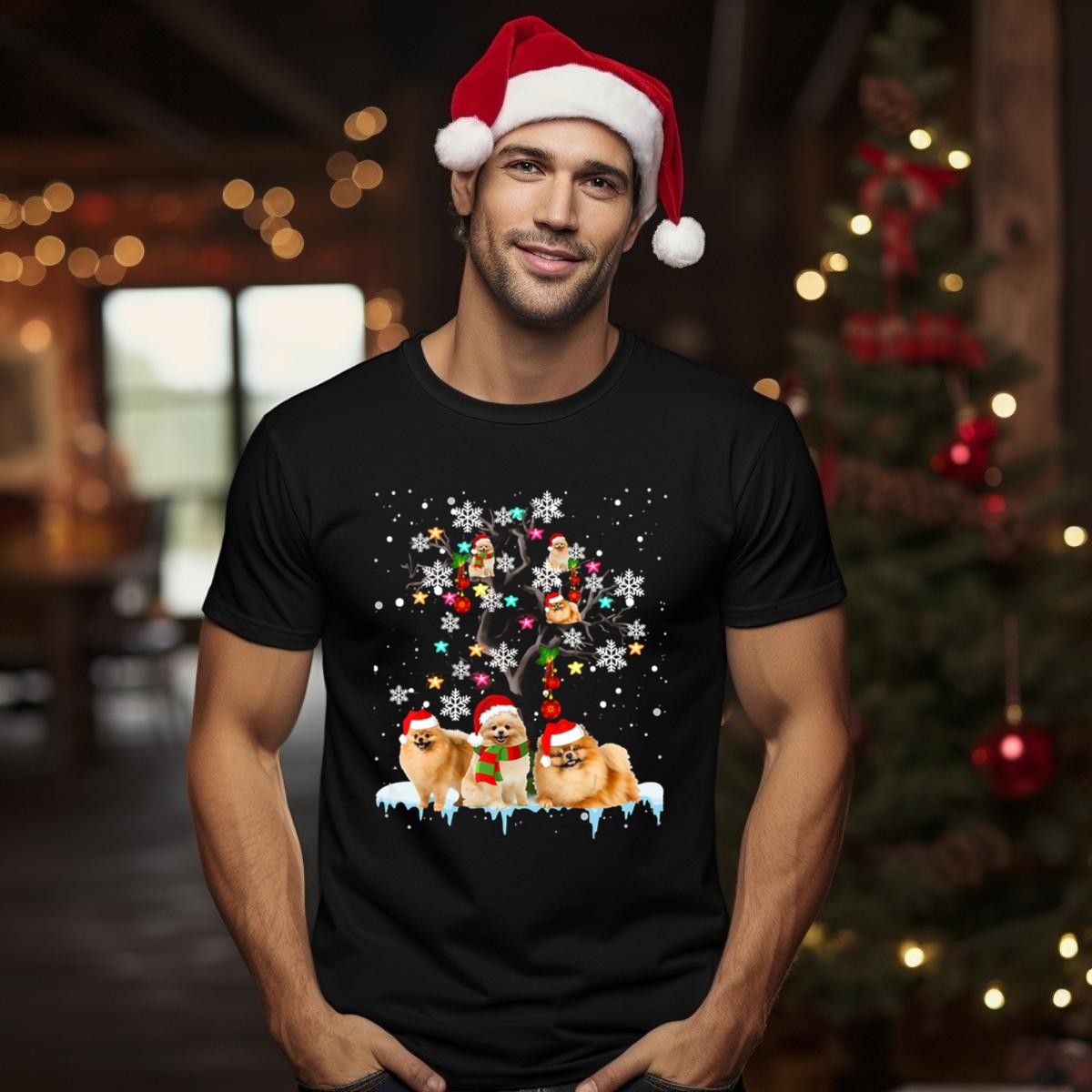 Celebrate the festive spirit with our Pomeranian Santa Hat Snowflakes Christmas Tree T-Shirt! Perfect for dog lovers and holiday enthusiasts alike, this charming tee features an adorable Pomeranian decked out in a Santa hat surrounded by whimsical snowflakes and a Christmas tree. Whether you’re hosting a holiday gathering, attending a themed event, or just spreading cheer during your daily wear, this shirt is sure to bring smiles and warmth to everyone around you. Made with care in the USA, it’s a unique fan-made design that captures the joy of the season.