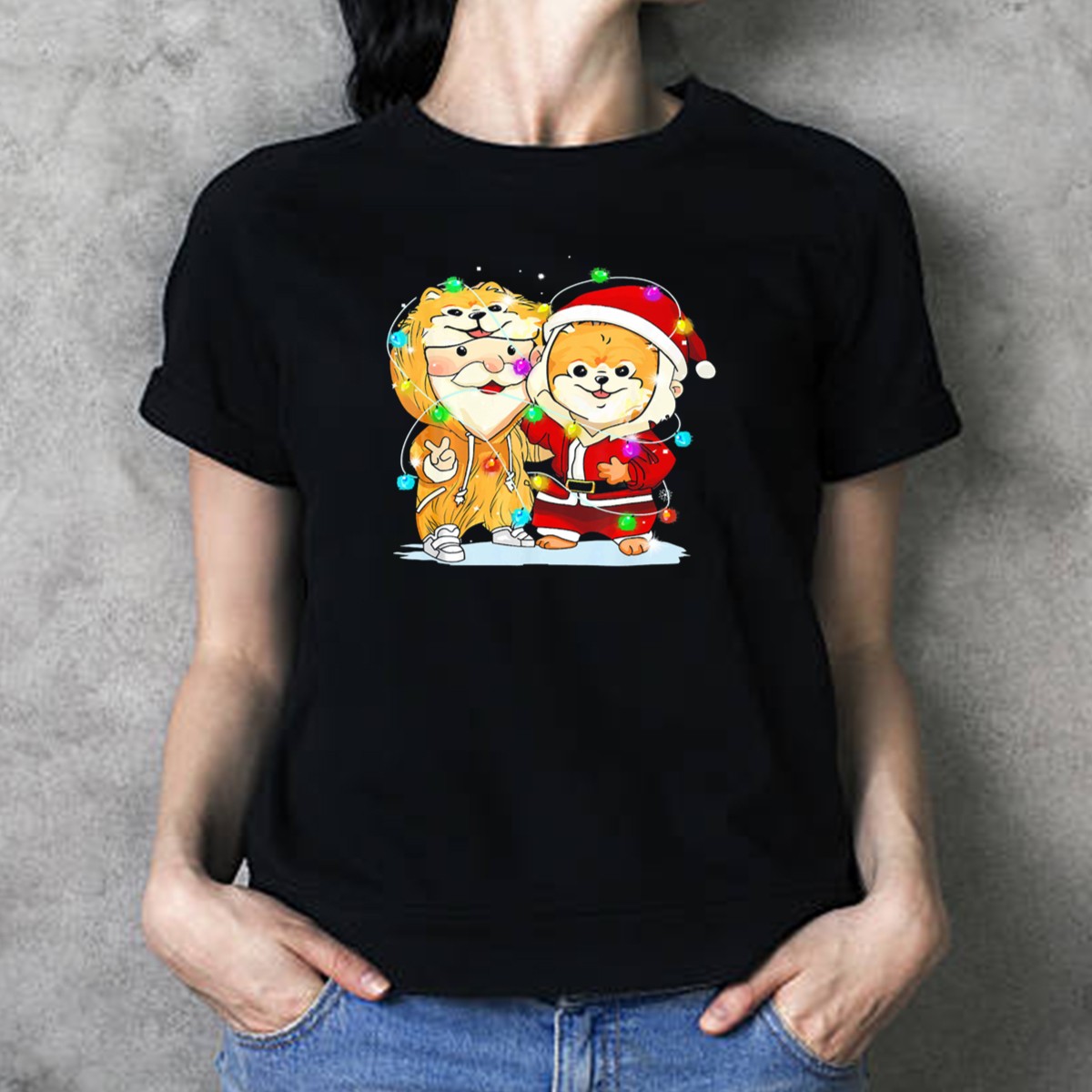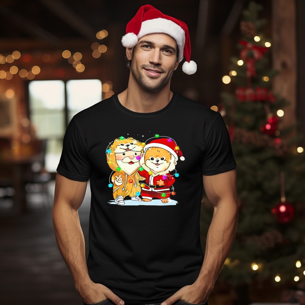 Celebrate the festive spirit with our Pomeranian Wearing Santa Suit With Christmas Lights And Santa Companion T-Shirt! This adorable graphic tee is perfect for dog lovers and holiday enthusiasts alike. Whether you’re attending a themed event, enjoying a casual day out, or simply spreading cheer during the holiday season, this shirt will make you the center of attention. With its fan-made design printed in the USA, it combines comfort and style, making it a unique addition to your wardrobe.