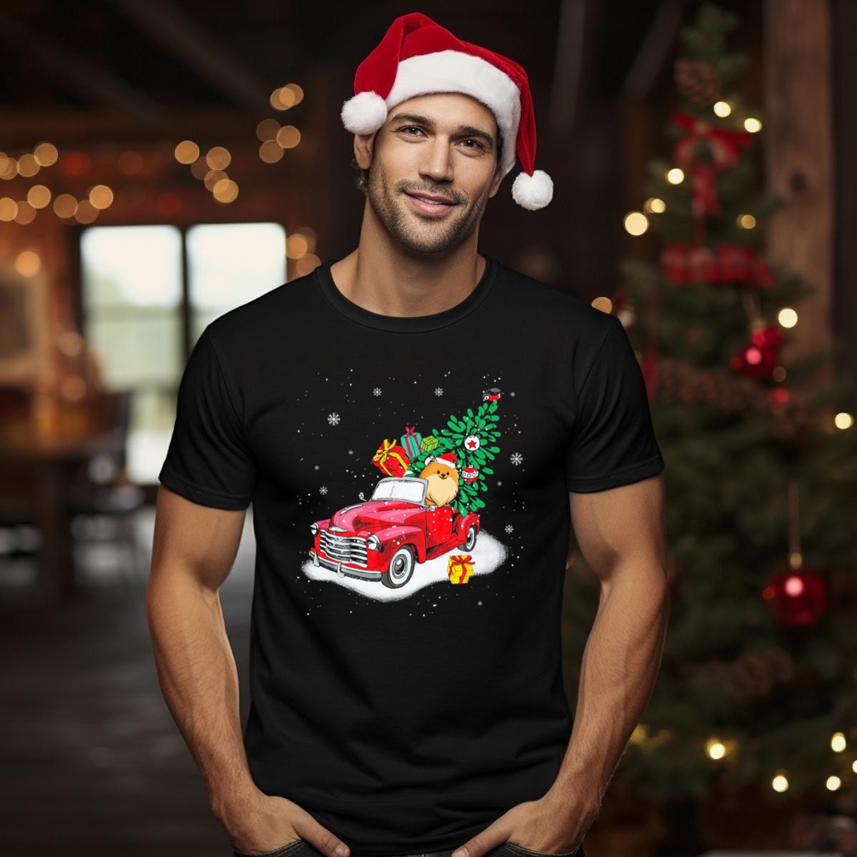 Be the first to review “Pomeranian With Christmas Tree And Gifts In Red Truck Snow Scene T Shirt”