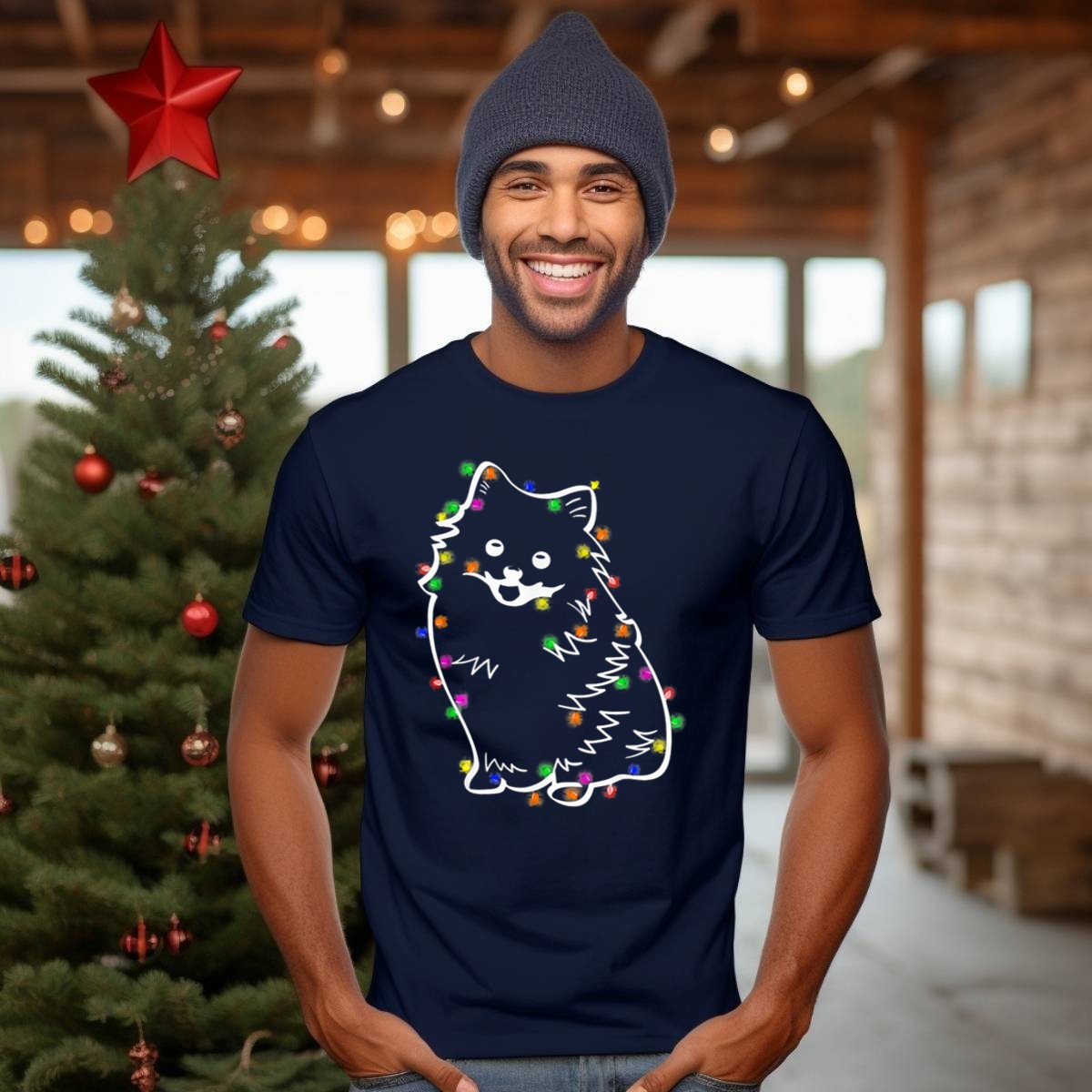 Be the first to review “Pomeranian Wrapped In Christmas Fairy Lights Festive Funny T-Shirt”