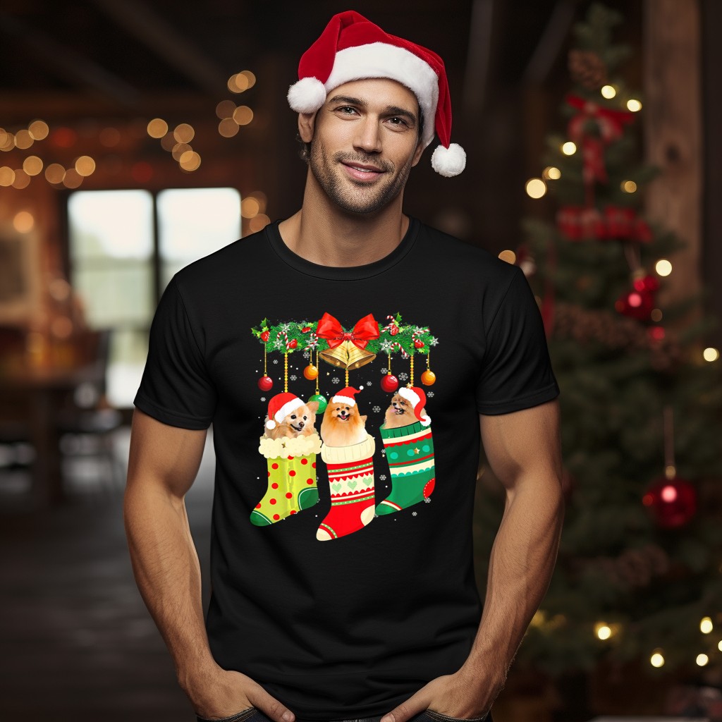 Celebrate the festive season with our delightful Pomeranians In Christmas Stockings With Santa Hats And Festive Decorations T-Shirt! Perfect for dog lovers and holiday enthusiasts alike, this playful design captures the joy of Christmas with adorable Pomeranians that will bring a smile to anyone’s face. Ideal for casual wear, themed events, or simply spreading cheer during daily activities, this shirt is a must-have for those who embrace the holiday spirit in style.