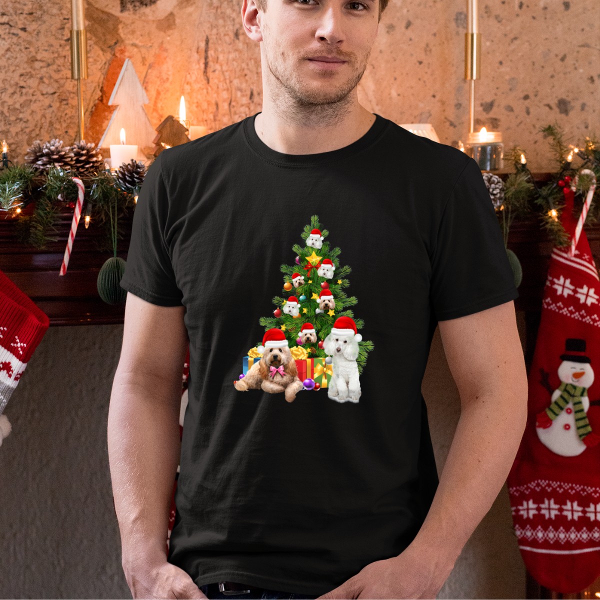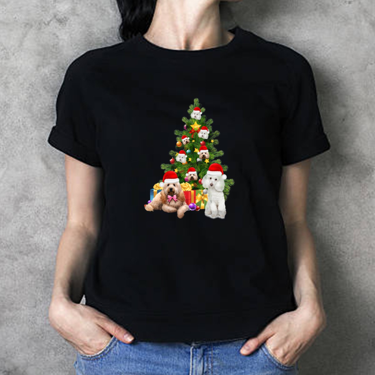 Celebrate the holiday spirit in style with our Poodle Dog Santa Hats Christmas Tree T-Shirt! This delightful design captures the joy of the season, featuring adorable poodles adorned in festive Santa hats surrounded by a cheerful Christmas tree and presents. Perfect for dog lovers and anyone looking to spread holiday cheer, this shirt is ideal for casual wear, themed events, or daily festivities. Made with care in the USA, it’s a unique addition to your holiday wardrobe that will surely bring smiles all around.