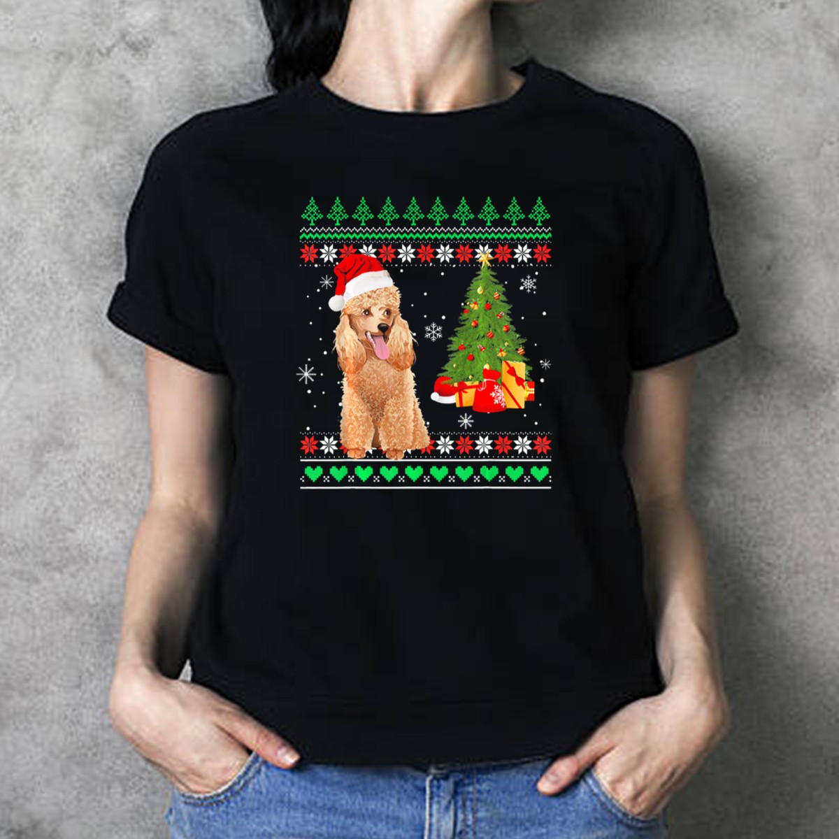 Celebrate the holiday season in style with our charming Poodle In Santa Hat And Christmas Lights T-Shirt! This delightful design is perfect for dog lovers and festive spirits alike, making it an ideal choice for casual gatherings, themed events, or simply spreading cheer during your daily wear. Made with a fan-made design printed right here in the USA, this shirt captures the joy of the holidays while offering comfort and durability.