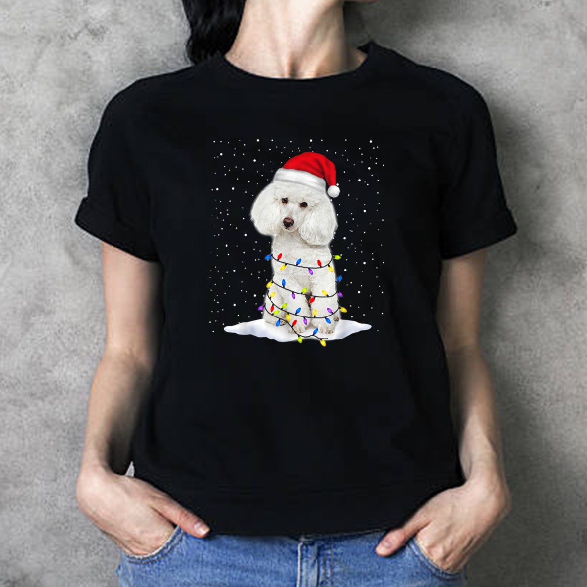 Celebrate the festive season with our Poodle Santa Christmas Tree Decor T-Shirt, perfect for dog lovers and holiday enthusiasts alike! This charming shirt features a delightful graphic of a poodle dressed as Santa, surrounded by colorful string lights and a gentle snowfall, making it an ideal choice for casual wear, themed events, or daily outings during the holidays. Crafted for comfort and style, this shirt will keep you feeling festive and cozy all season long.