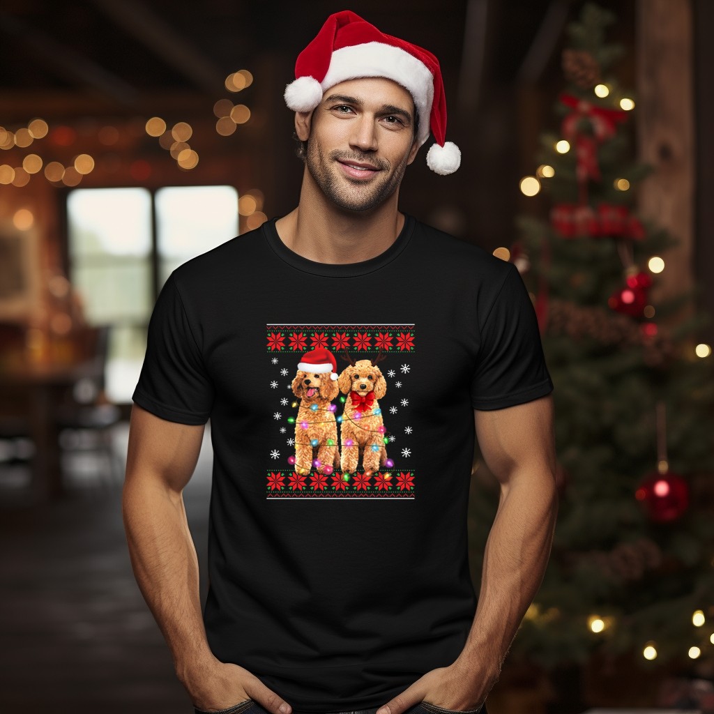 Celebrate the festive season in style with our Poodle Santa Hat Reindeer Christmas Lights Holiday Snowflakes T-Shirt! This whimsical design is perfect for dog lovers and holiday enthusiasts alike, making it an ideal choice for casual wear, themed events, or simply spreading cheer during daily outings. Crafted with care and printed in the USA, this shirt adds a touch of fun to your holiday wardrobe while ensuring comfort and durability.