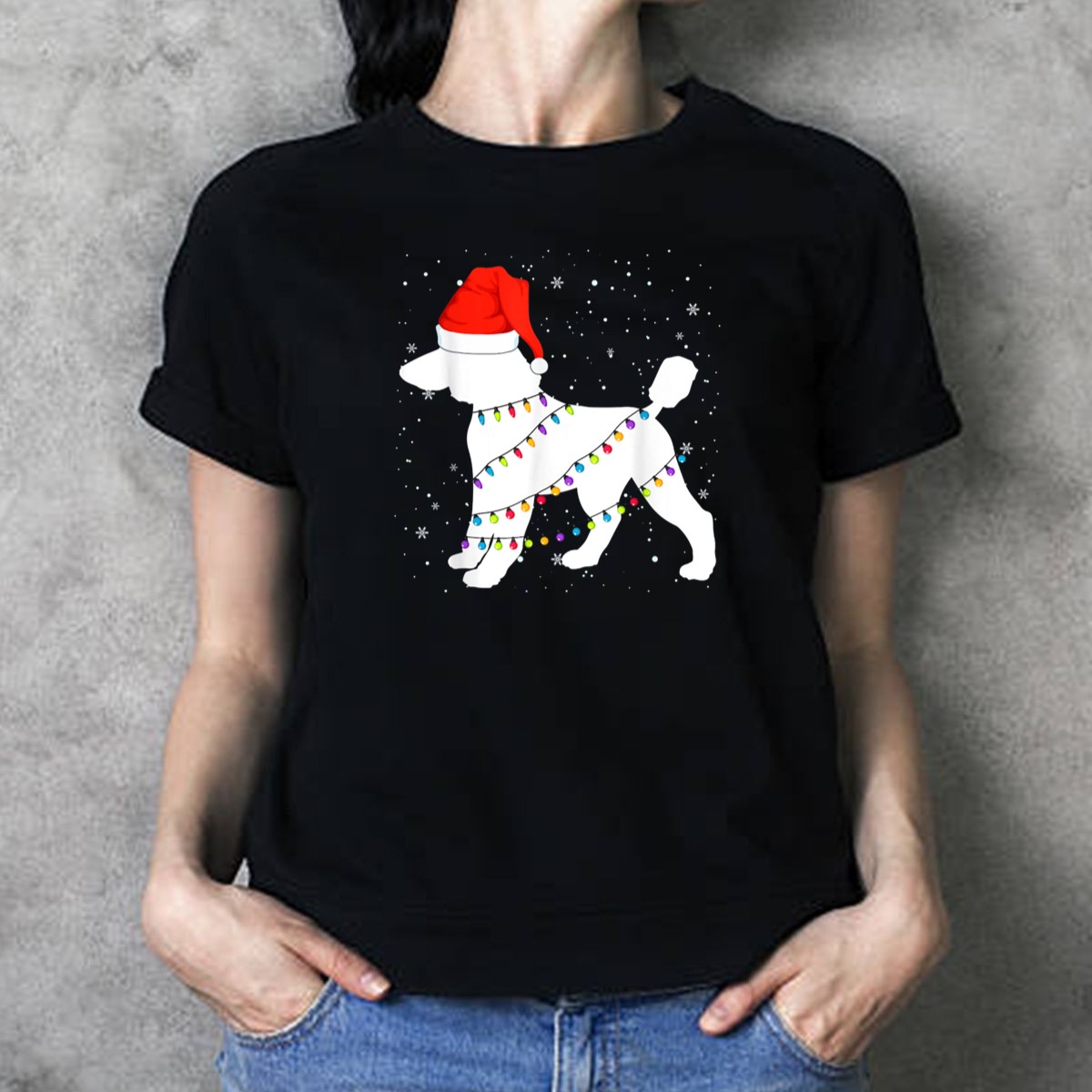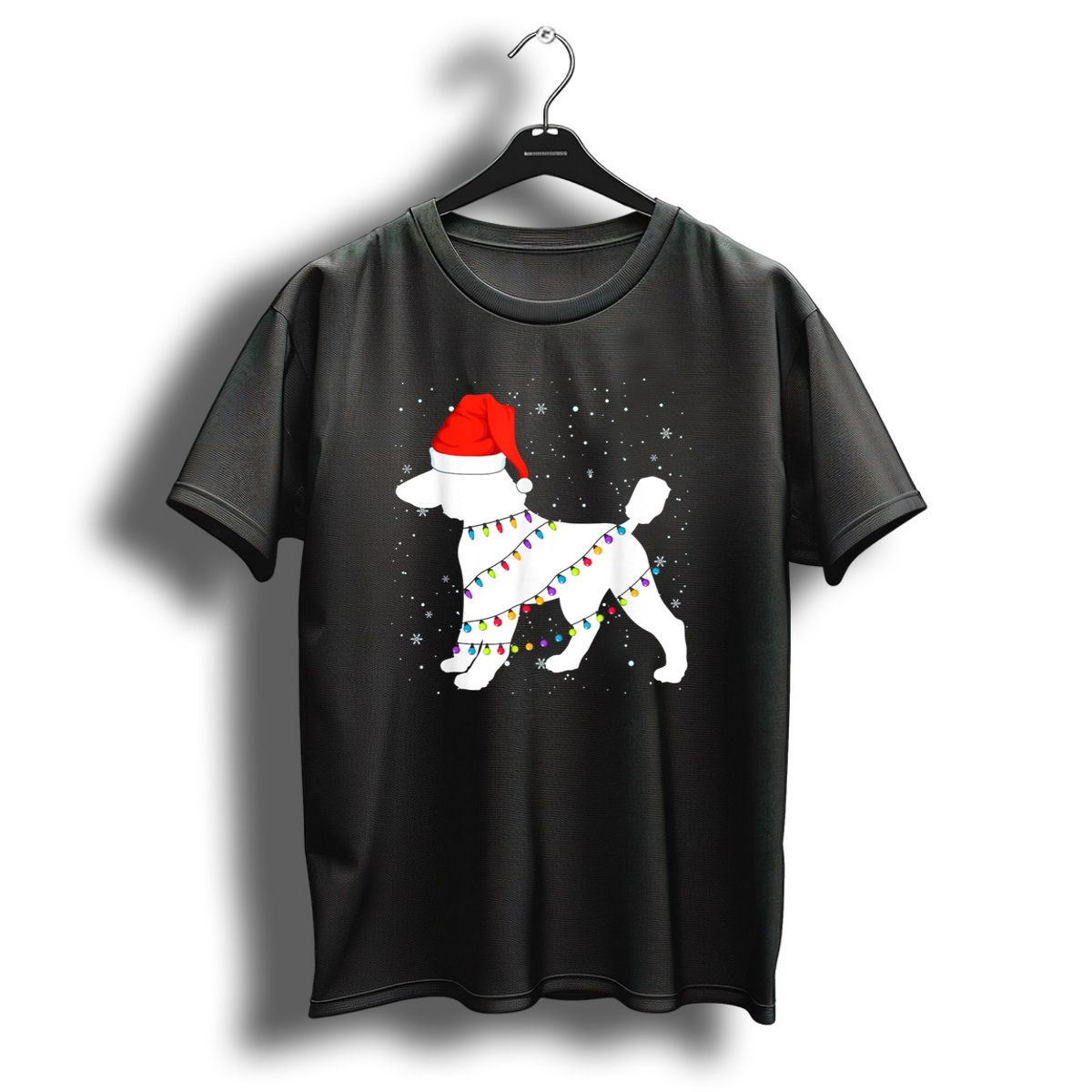 Celebrate the festive spirit with our adorable Poodle Wrapped In Christmas Lights T-Shirt, perfect for dog lovers and holiday enthusiasts alike! This charming design features a playful poodle donning a Santa hat, surrounded by twinkling lights and snowflakes, making it an ideal choice for casual wear during the holiday season or themed events. Crafted for comfort and style, this shirt is sure to bring joy and cheer wherever you go!