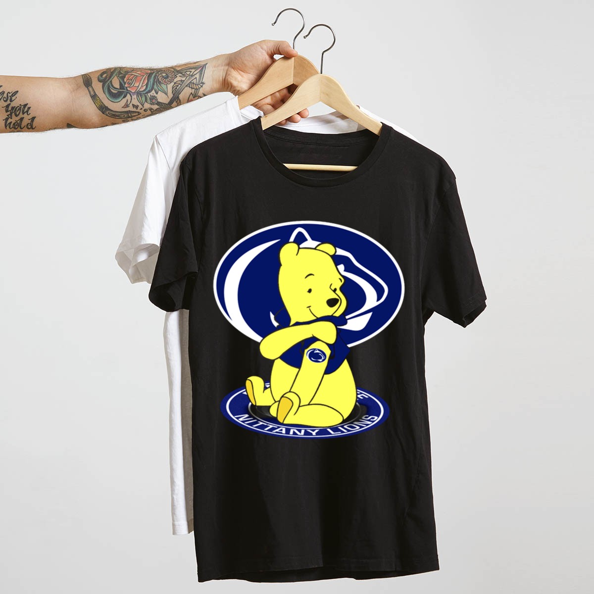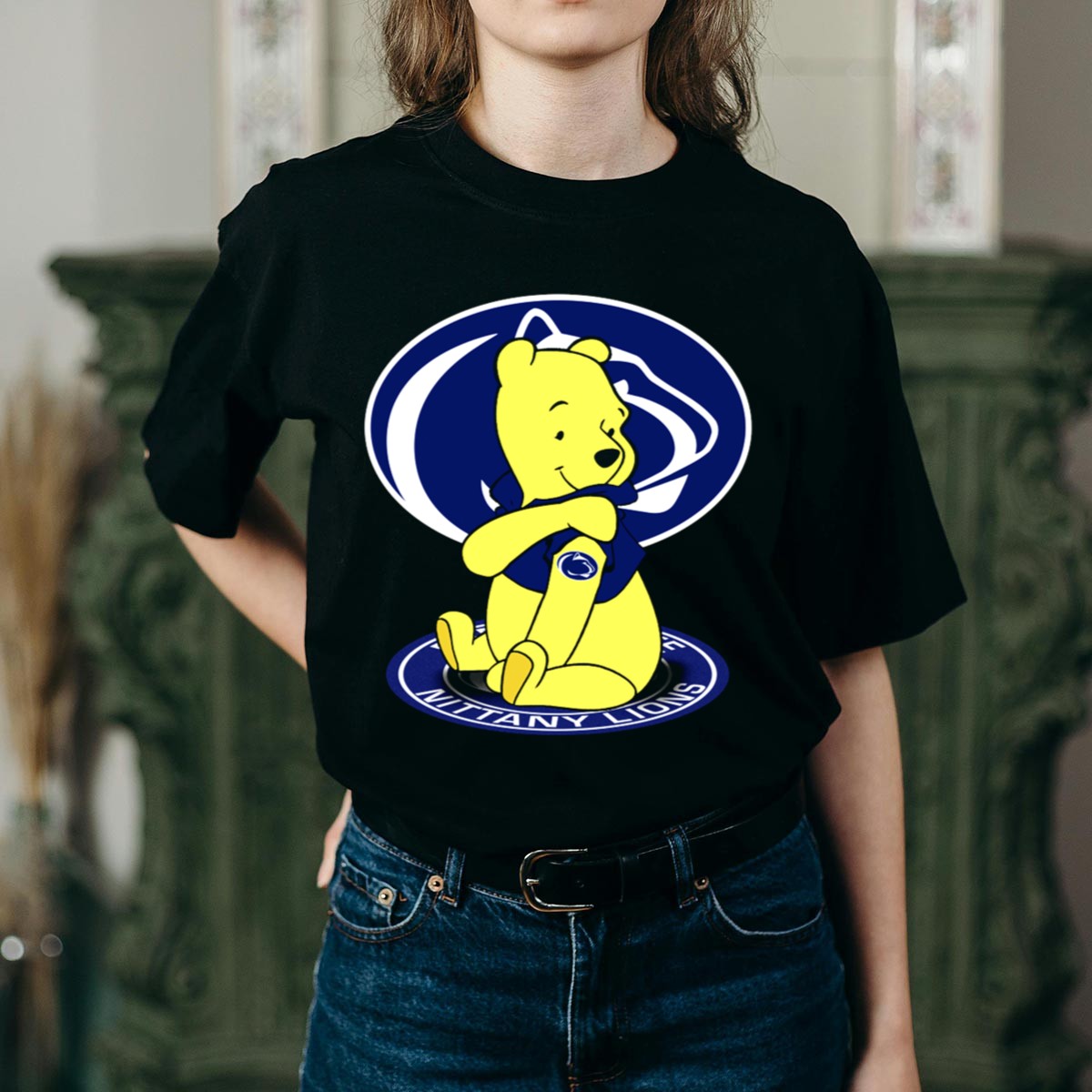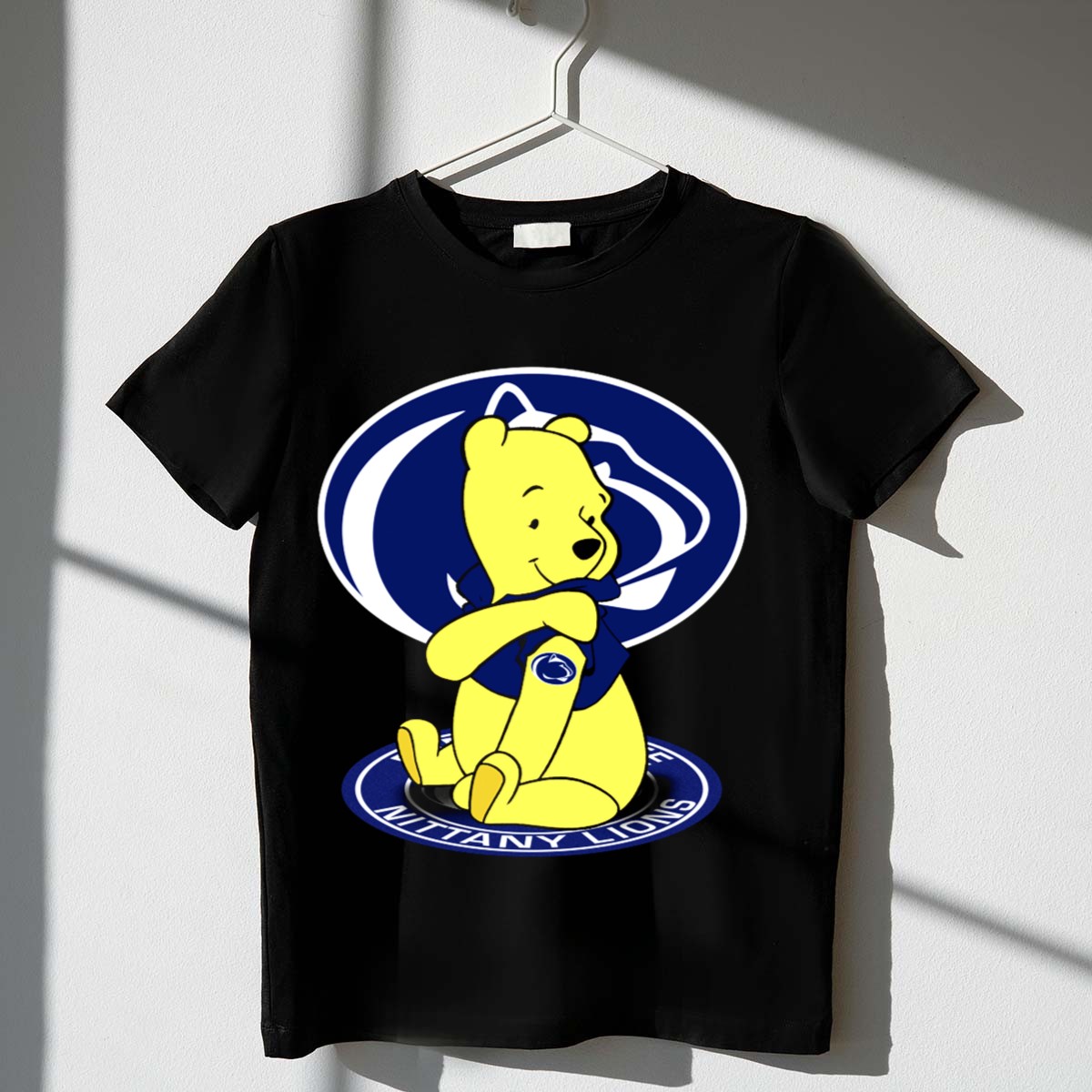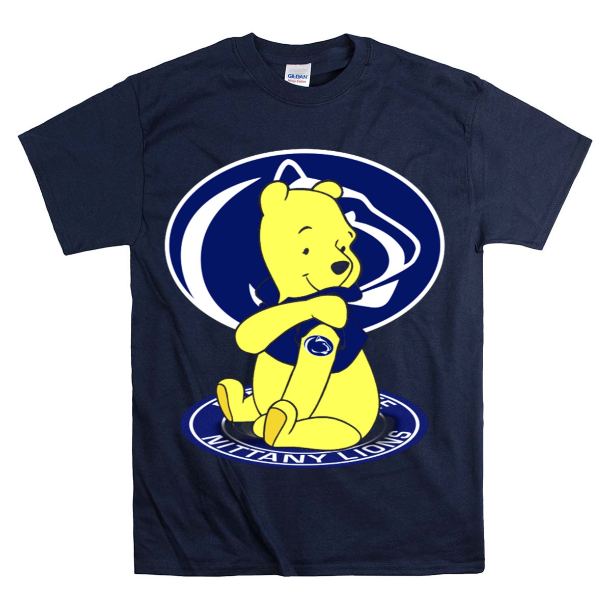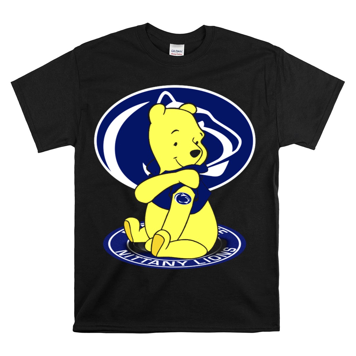Show your love for the Penn State Nittany Lions with our Pooh Bear Fan Emblem T-Shirt! This playful design is perfect for fans of all ages who want to sport their school spirit in style. Whether you’re heading to a game, attending a themed event, or just enjoying daily casual wear, this shirt ensures comfort and durability while making a fun statement. Made in the USA, it’s a must-have for any true Nittany Lions supporter.