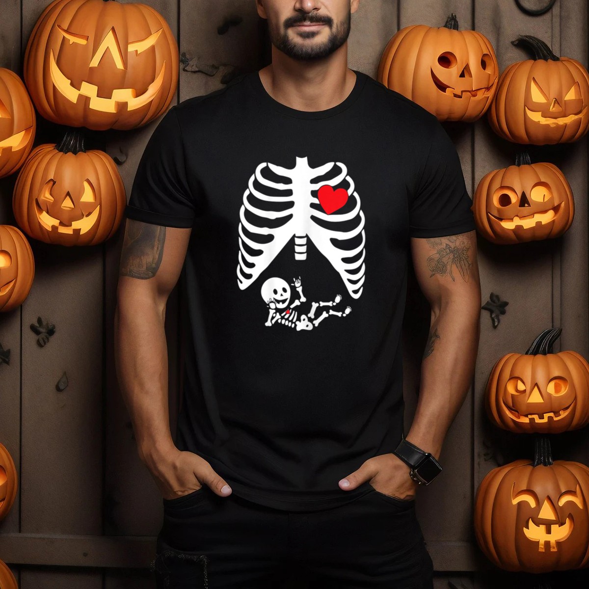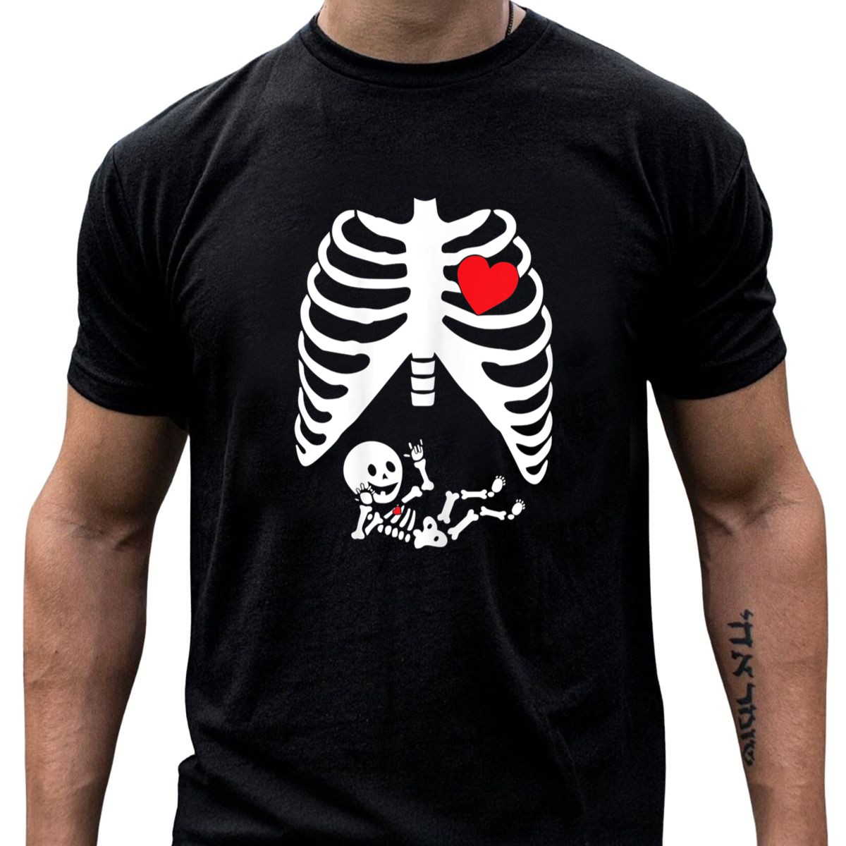 Pregnant Halloween Skeleton Costume With Heart And Baby Skeleton T-Shirt