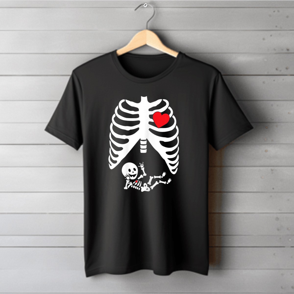 Be the first to review “Pregnant Halloween Skeleton Costume With Heart And Baby Skeleton T-Shirt”