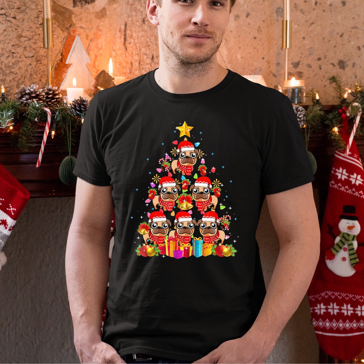 Embrace the festive spirit with our Pug Christmas Tree Santa Hats Lights Ornaments Gifts T-Shirt! Perfect for dog lovers and holiday enthusiasts alike, this charming graphic tee features an adorable design that captures the joy of the season. Ideal for casual wear, themed events, or just spreading cheer during your daily outings, this shirt is a unique addition to your wardrobe that showcases your love for pugs and holiday fun. Made with care in the USA, it’s not just a T-shirt, but a celebration of all things merry and bright!
