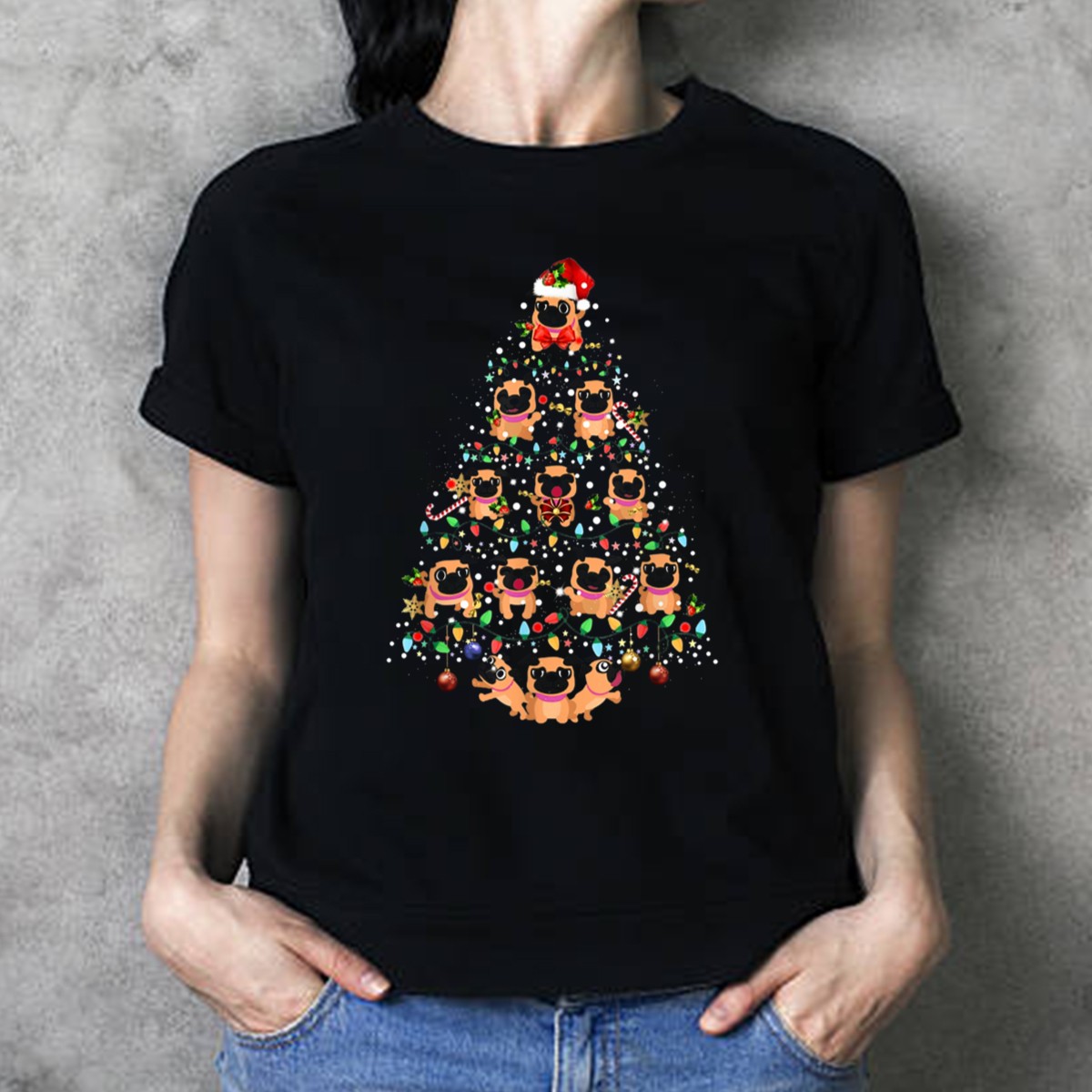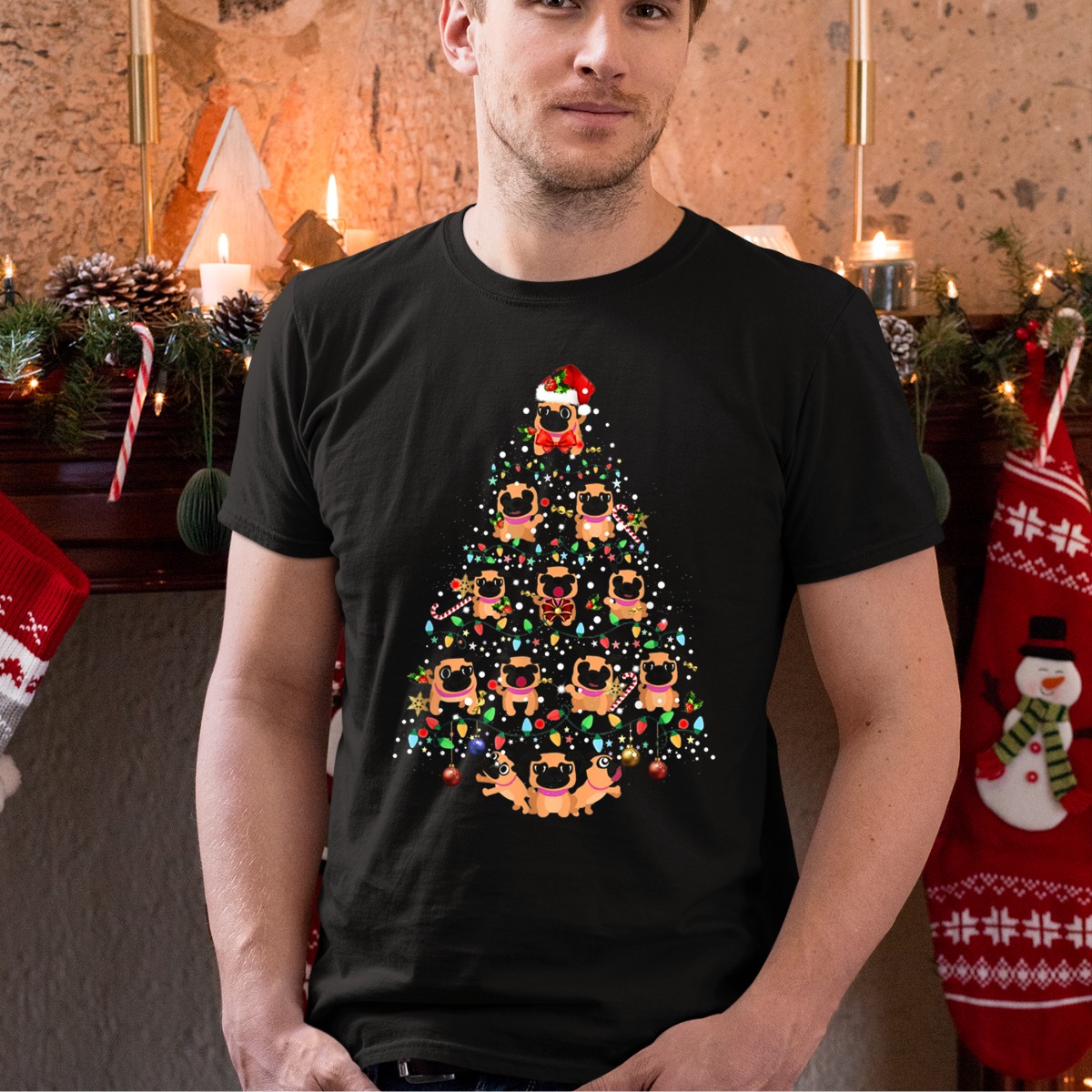 Celebrate the festive season with our Pug Dog Christmas Tree T-Shirt, perfect for dog lovers and holiday enthusiasts alike! This fan-made design features an adorable pug adorned with a Santa hat, surrounded by shimmering holiday decorations, making it the ideal choice for casual wear, themed events, or simply spreading cheer during the holidays. Crafted for comfort and style, this shirt is a must-have for anyone looking to showcase their love for pugs and the joy of Christmas.