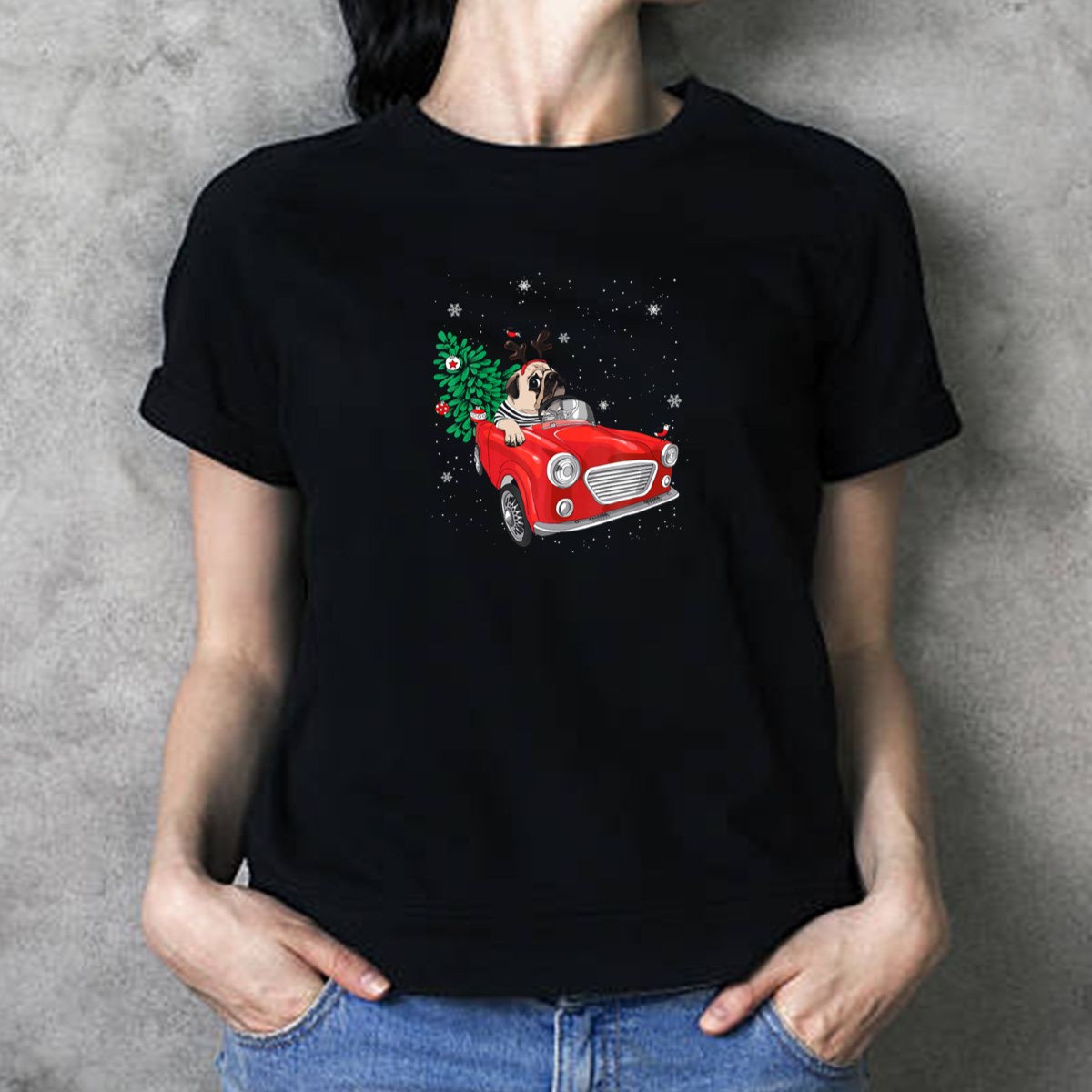 Be the first to review “Pug Dog Ugly Christmas Pug Lover Reindeer Antlers Red Car Snowflakes Holiday Scene T-Shirt”
