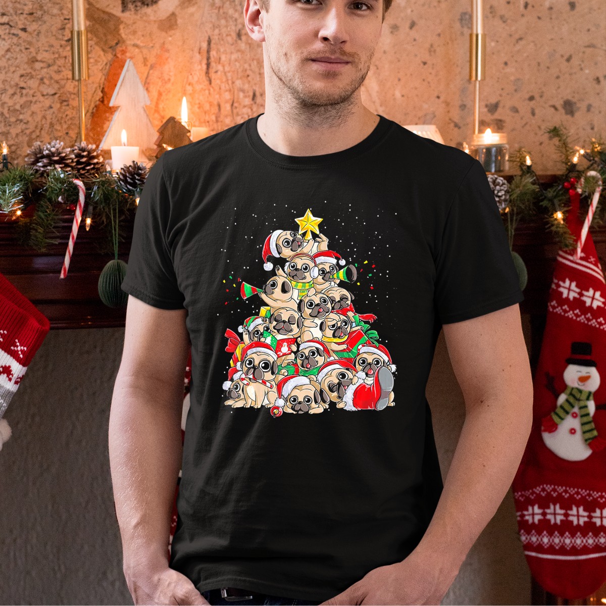 Celebrate the joy of the holiday season with our Pug Santa Hat Christmas Tree Festive Dogs Holiday Stack T-Shirt! This delightful shirt is perfect for dog lovers and anyone who enjoys a touch of whimsy in their festive attire. Ideal for casual gatherings, themed events, or simply spreading holiday cheer throughout your daily life, this fan-made design showcases adorable pugs decked out in Santa hats, bringing a smile to everyone around you. Printed right here in the USA, it’s a unique way to express your love for furry friends during the most wonderful time of the year!