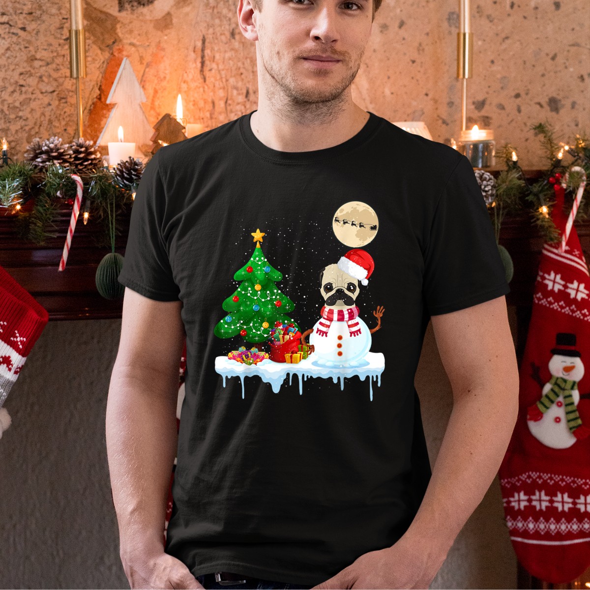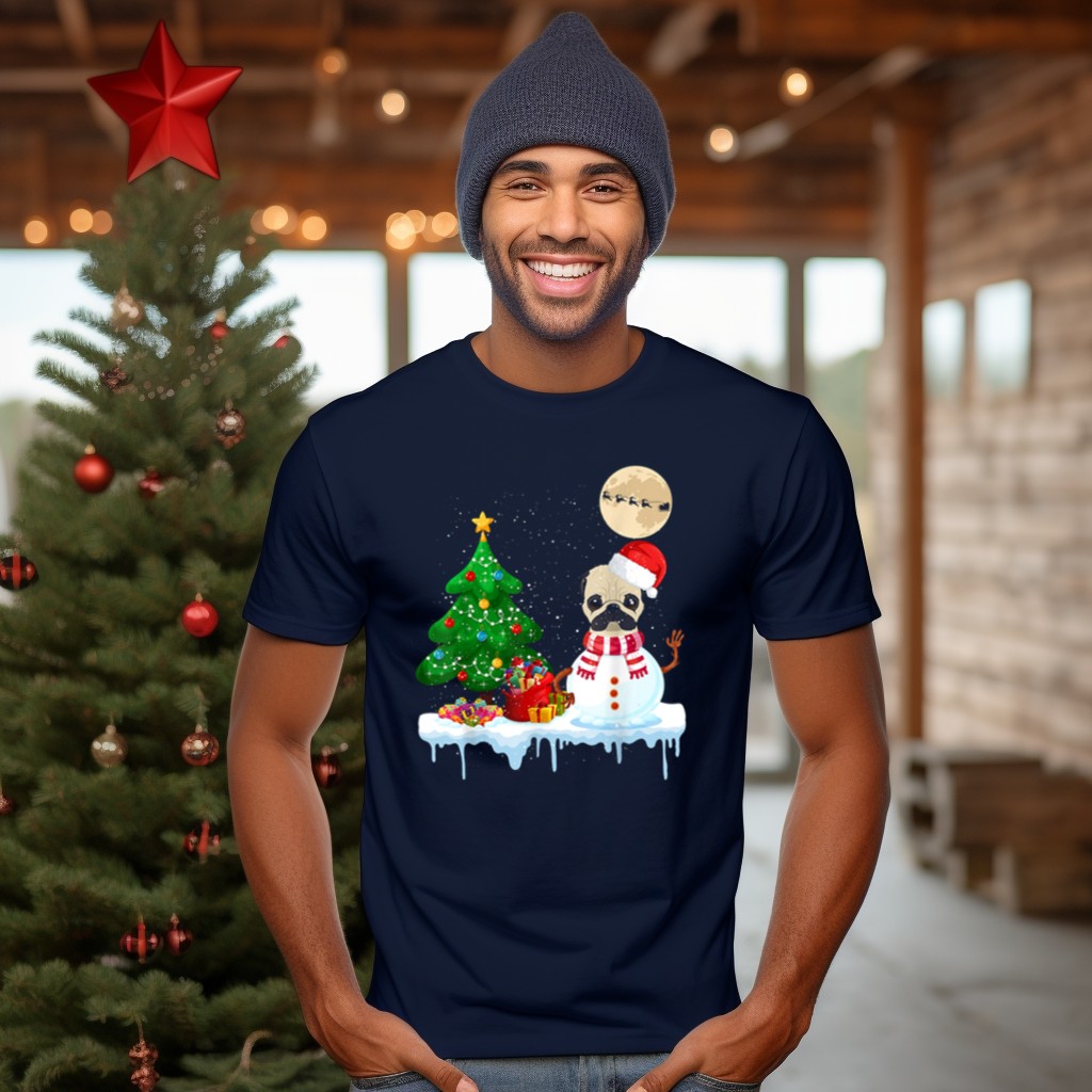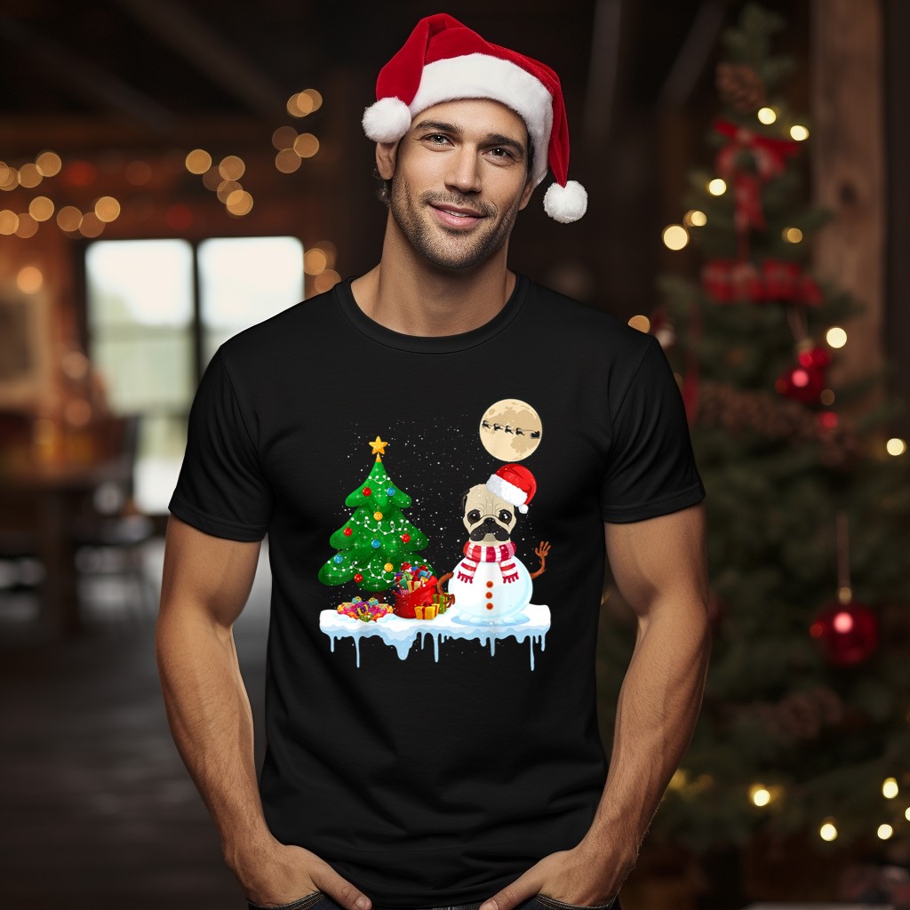 Embrace the festive spirit with our Pug Snowman Christmas Tree Santa Hat Moon Santa Sleigh T-Shirt, perfect for dog lovers and holiday enthusiasts alike! This delightful design captures the joy of the season, making it an ideal choice for casual wear, themed events, or simply spreading cheer during daily activities. Crafted with care and printed in the USA, this shirt is not just a piece of clothing; it’s a celebration of the holidays with a charming twist!