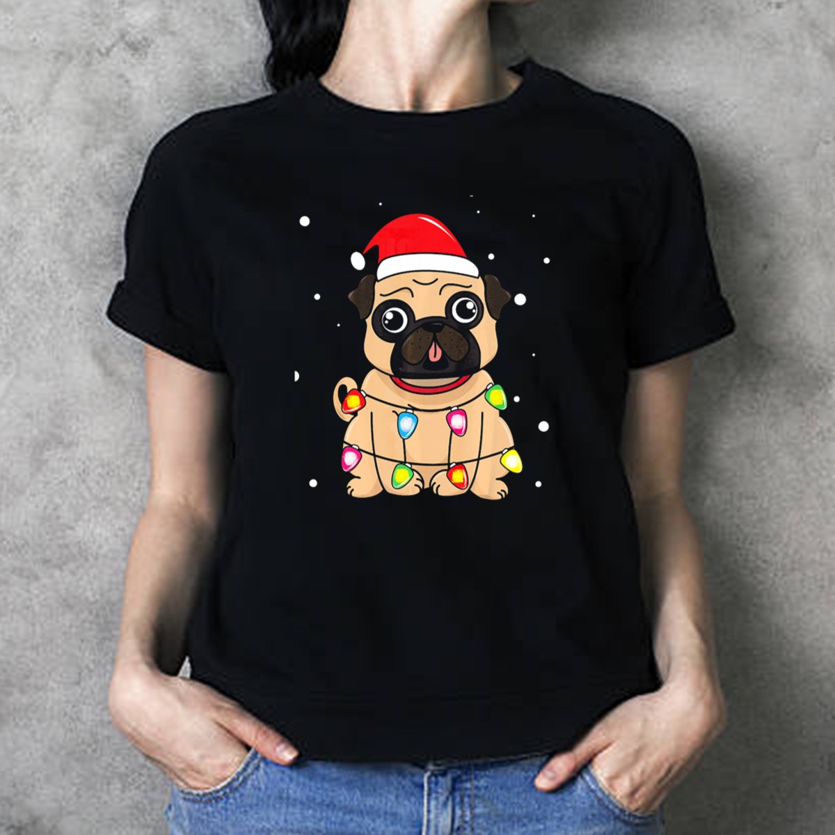 Celebrate the festive season with our adorable Pug Wearing Santa Hat And Christmas Lights T-Shirt! Perfect for dog lovers and those who enjoy a playful twist on holiday attire, this shirt is ideal for casual gatherings, themed events, or just spreading cheer during the holidays. Crafted with a unique fan-made design printed in the USA, it’s a fun and stylish way to showcase your love for pugs and the joy of Christmas.