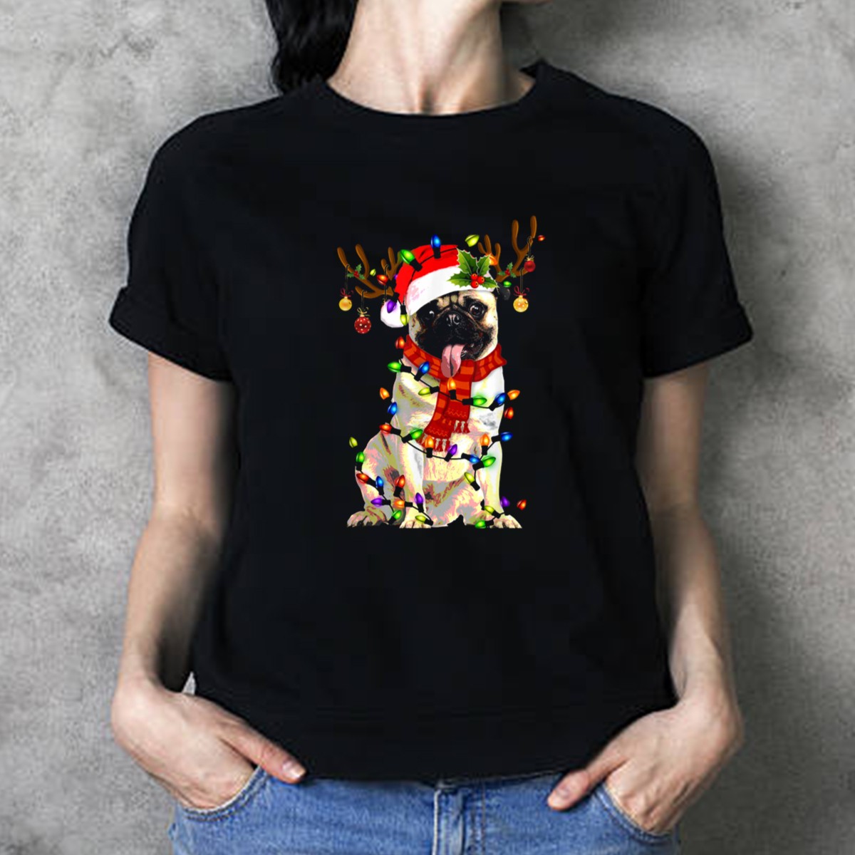 Get into the festive spirit with our adorable Pug Wearing Santa Hat Reindeer Antlers Christmas Lights Scarf Holiday T-Shirt! This fun and playful design is perfect for dog lovers and anyone looking to add a touch of whimsy to their holiday wardrobe. Whether you’re attending a family gathering, a themed event, or just enjoying a casual day out, this shirt will surely bring smiles and spread cheer. Made with care in the USA, it’s a must-have for your all-season celebration!