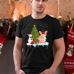 Rabbit In Santa Hat With Christmas Lights Snowman And Tree T Shirt