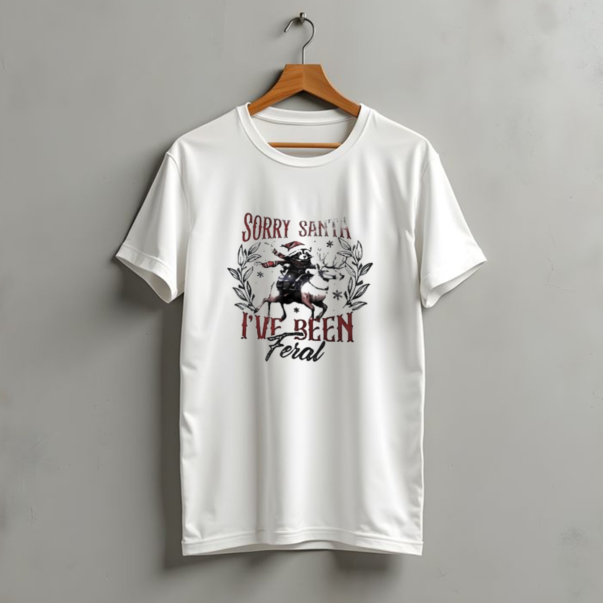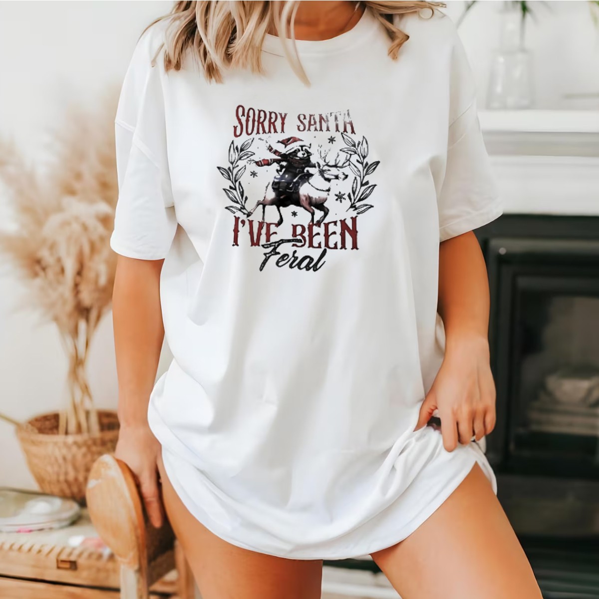 Celebrate the holiday season with a whimsical twist in our “Raccoon Riding Reindeer Sorry Santa I’ve Been Feral” T-Shirt! Perfect for animal lovers and festive fun, this shirt is designed for those who enjoy a lighthearted take on Christmas. Whether you’re heading to a themed party, a casual family gathering, or just want to spread some cheer during your daily wear, this unique fan-made design is sure to turn heads and spark smiles. Proudly printed in the USA, it embodies the spirit of creativity and holiday cheer.