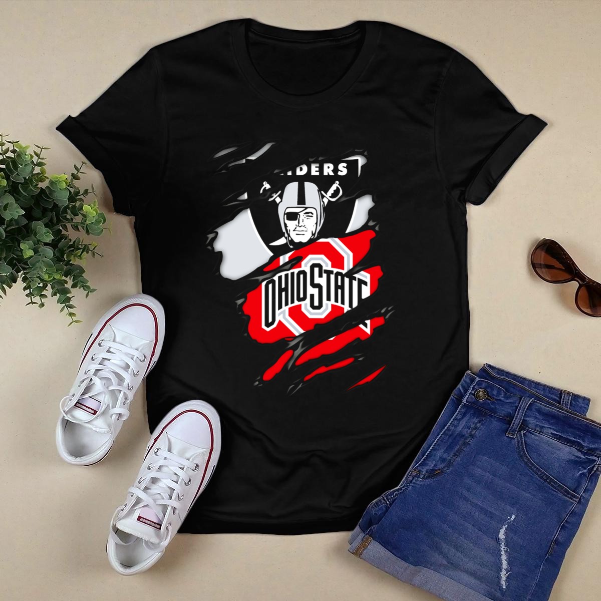 Show your team spirit with the Raiders Ohio State Buckeyes Crossover T-Shirt, perfect for fans who want to showcase their love for the Buckeyes in style. Made for casual wear, themed events, or daily outings, this shirt features a fan-made design printed right here in the USA, ensuring that you stand out in any crowd. Its classic fit and comfortable material make it an ideal choice for any Ohio State supporter looking to represent their team with pride.