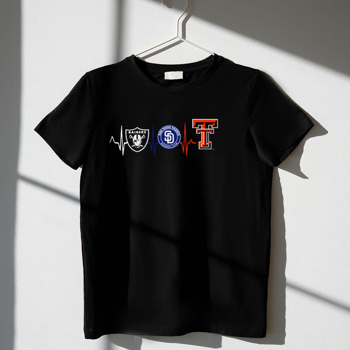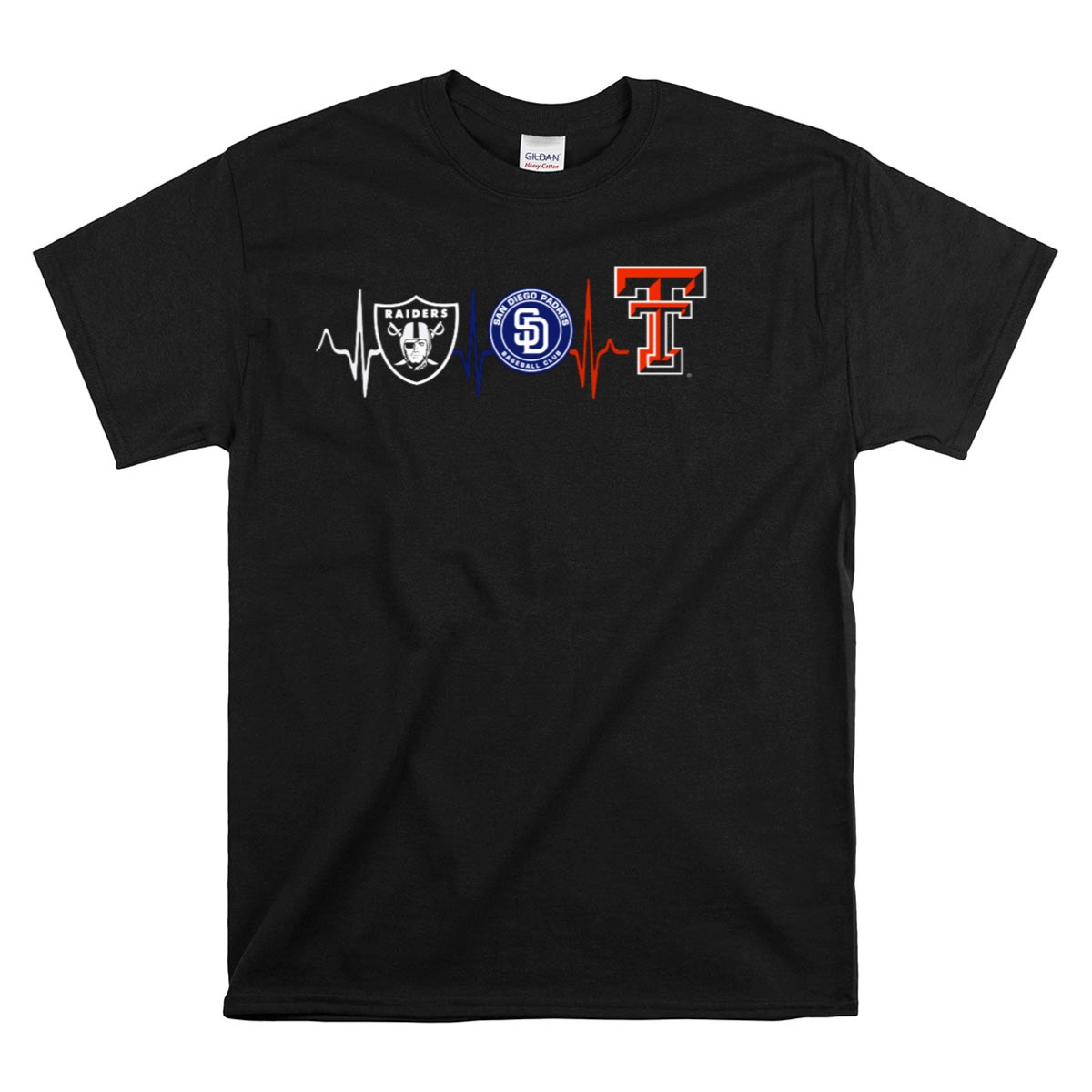 Show your love for Texas Tech with our Raiders Padres Heartbeat Tribute T-Shirt, a perfect blend of style and comfort for dedicated fans. This fan-made design is ideal for casual outings, themed events, or just daily wear, allowing you to represent your team with pride. Made in the USA, this shirt stands out with its unique heartbeat graphic that resonates with the spirit of the Raiders Padres, making it a must-have for any true supporter.