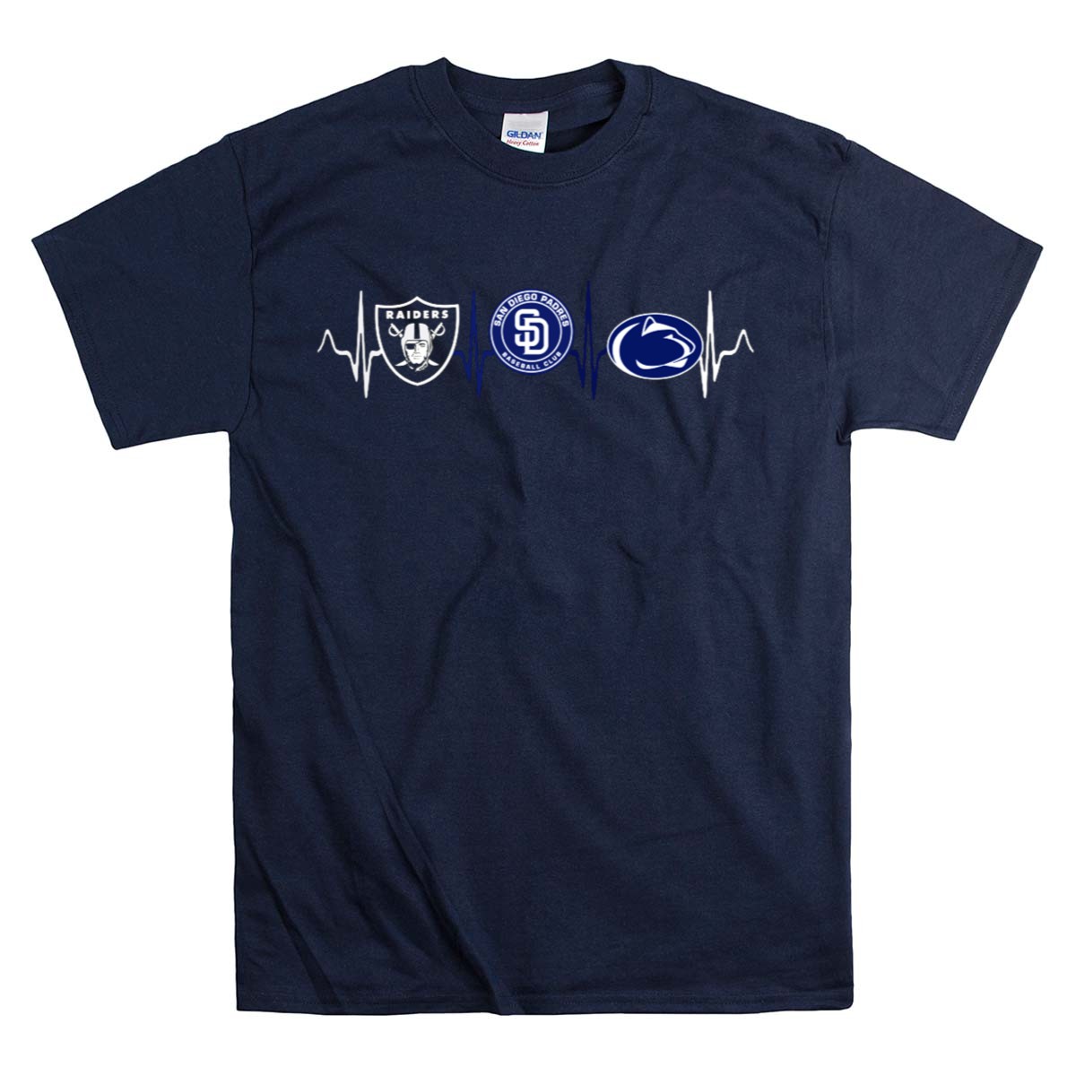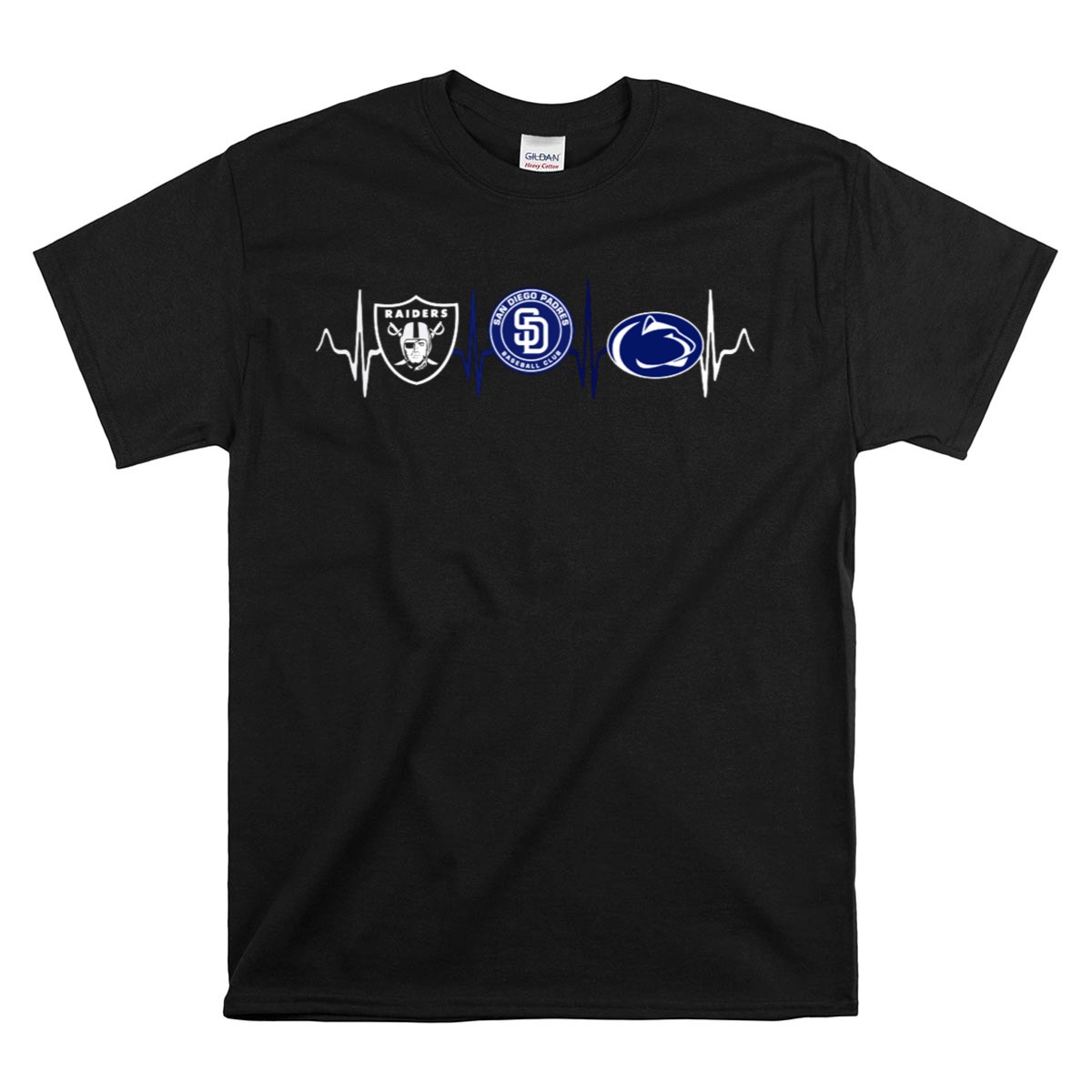 Show off your team spirit with the Raiders San Diego Padres Penn State Nittany Lions Heartbeat T-Shirt! This fan-made design captures the energy and passion of sports enthusiasts, making it the perfect addition to your casual wear collection. Whether you’re heading to a game, attending a themed event, or simply enjoying a day out, this classic tee is designed for comfort and style, ensuring you stand out while cheering for your favorite teams.