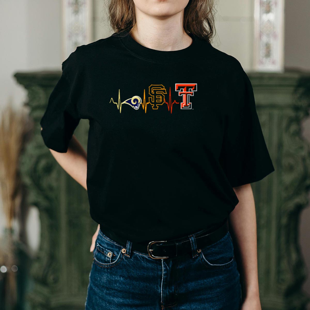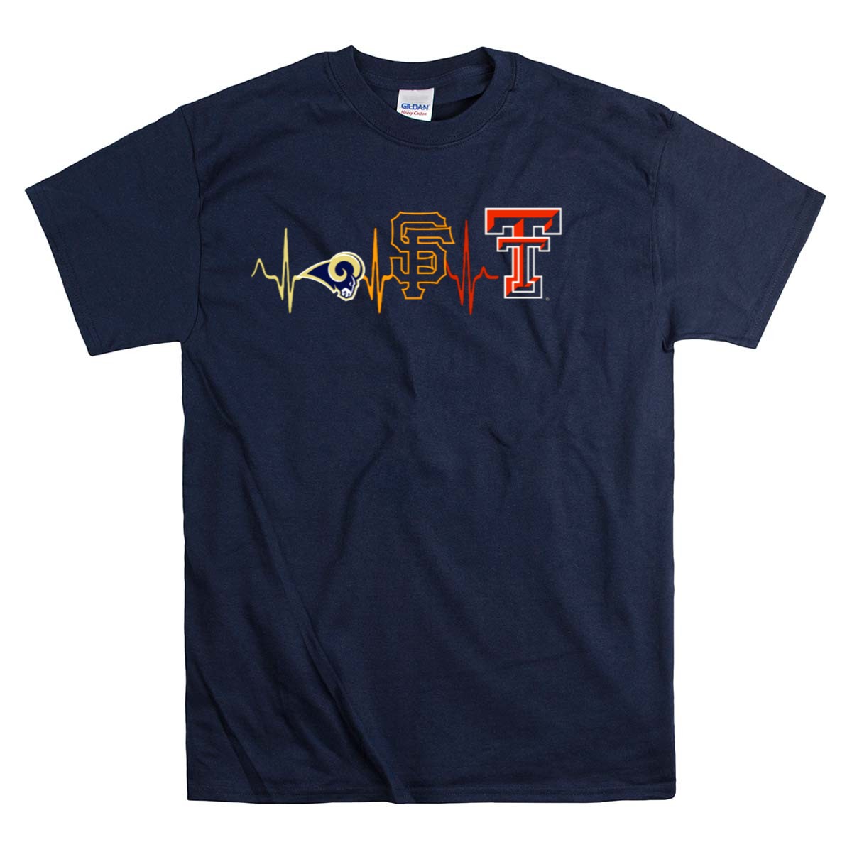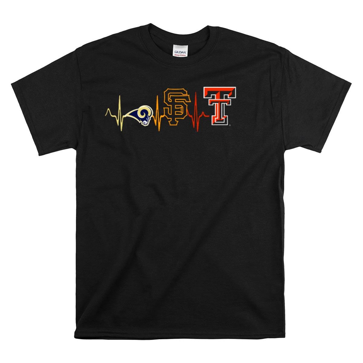 Show your unwavering support for Texas Tech with our Rams Giants SF Texas Tech Heartbeat Fan Tribute T-Shirt. This shirt is perfect for passionate fans who want to showcase their school spirit during casual outings, themed events, or daily wear. Crafted with care and featuring a unique design that resonates with true fans, this shirt is printed in the USA, making it a standout piece in any wardrobe.