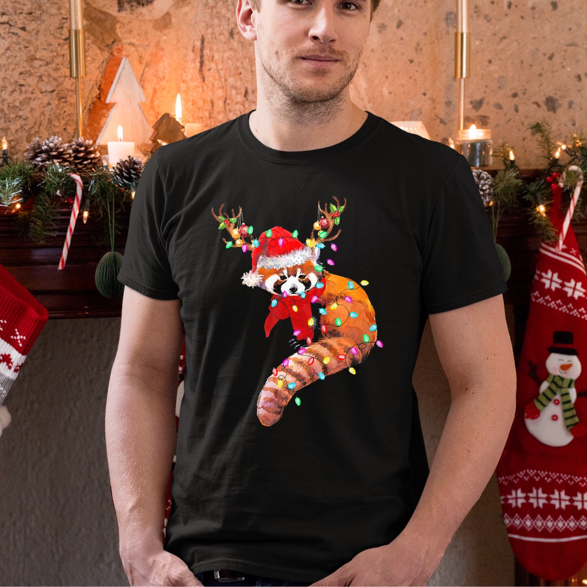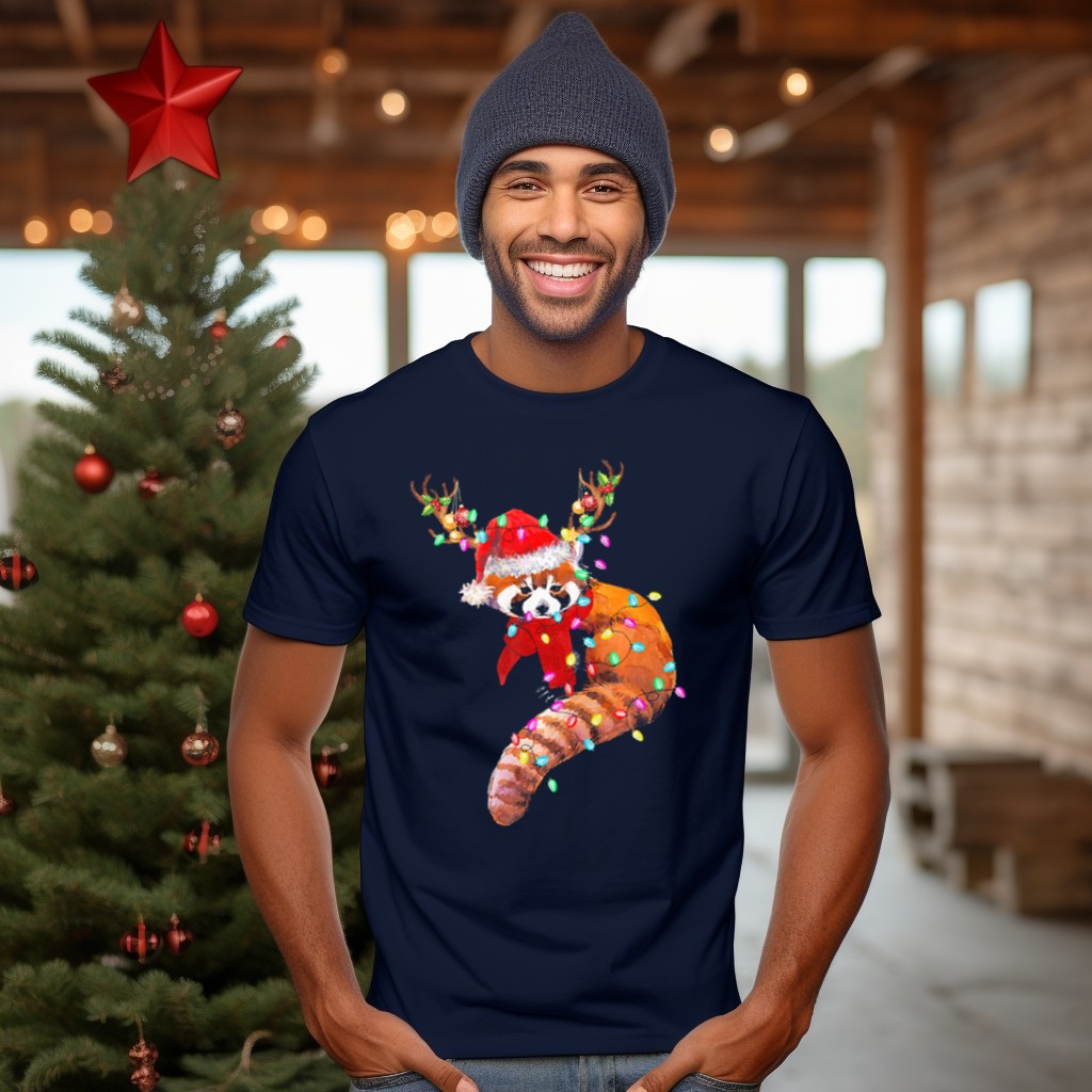 Embrace the festive spirit with our charming Red Panda Santa Hat Antlers Christmas Lights T-Shirt! Perfect for animal lovers and those who enjoy a touch of whimsy during the holiday season, this tee is designed to spread cheer at casual gatherings, themed events, or simply while lounging at home. Crafted for comfort and style, it features a delightful fan-made design printed in the USA, ensuring you stand out in the most delightful way.