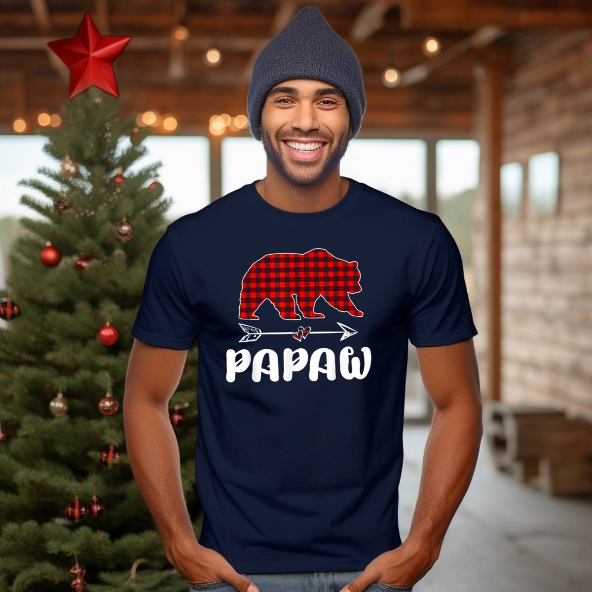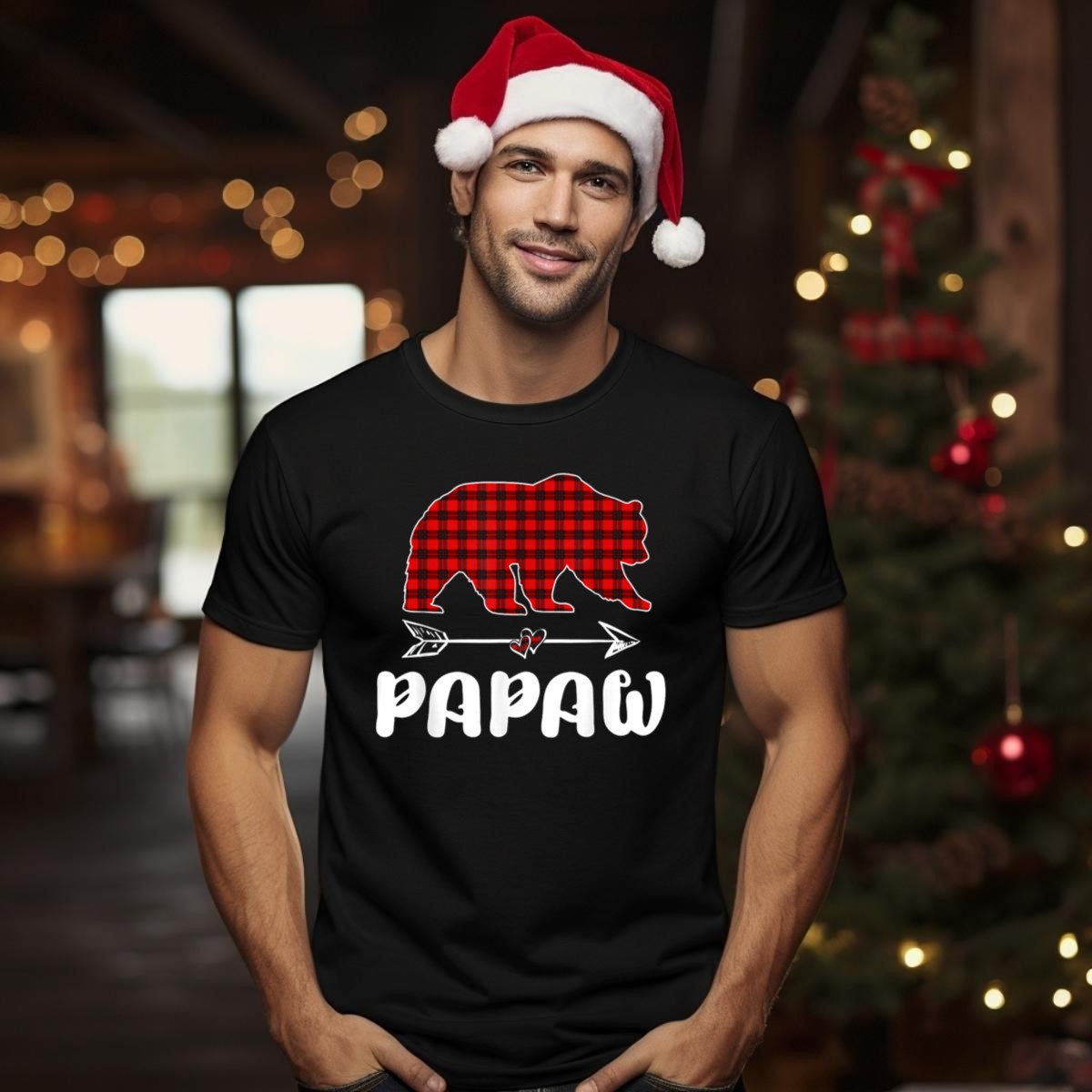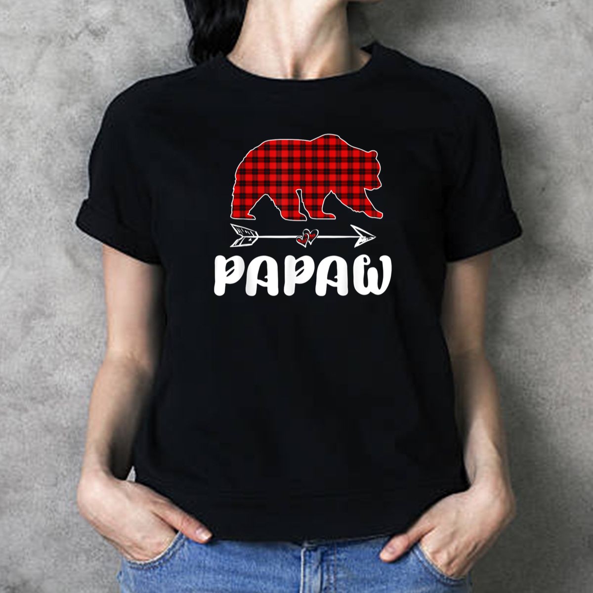 Red Plaid Bear Papaw Christmas Arrow Heart T Shirt