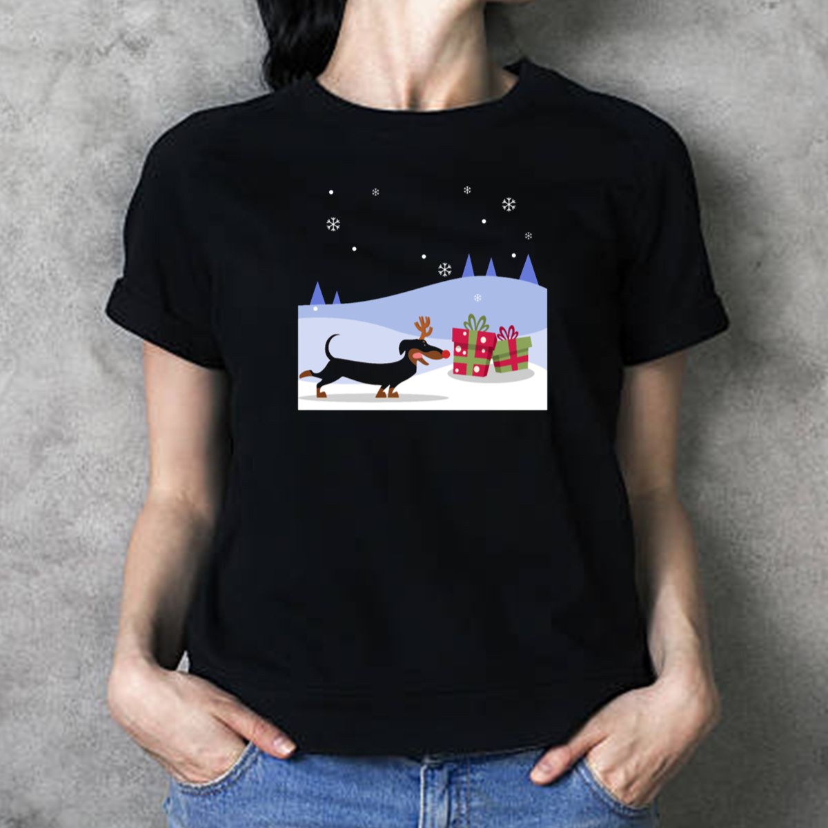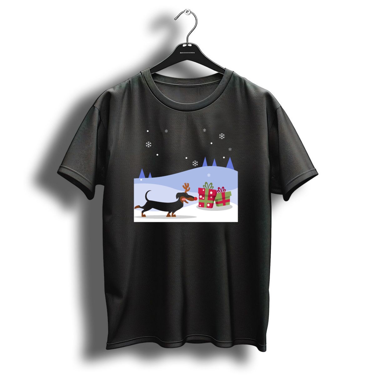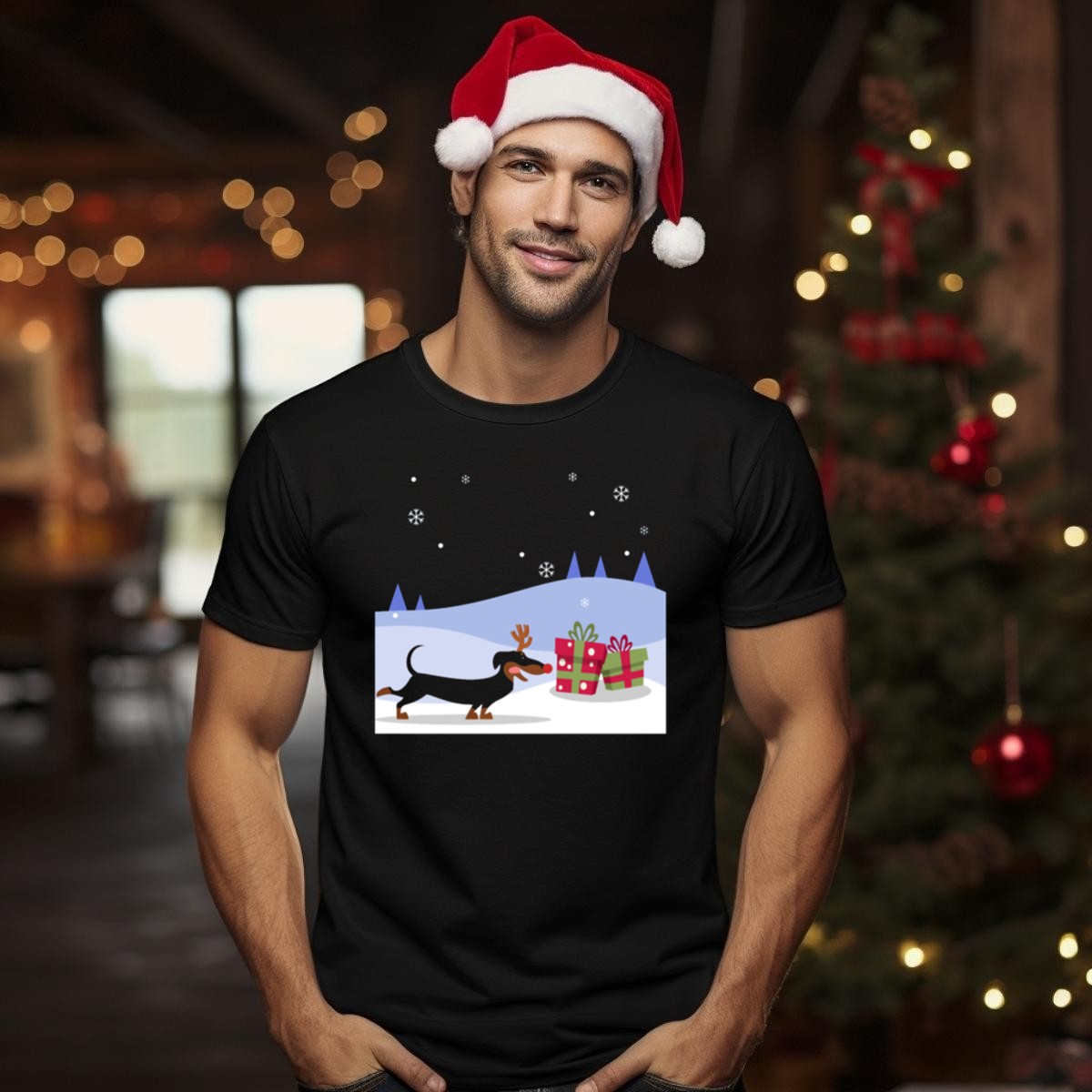 Celebrate the holiday season in style with our delightful Reindeer Dachshund Dog T-Shirt! Perfect for dog lovers and festive enthusiasts alike, this charming design features an adorable dachshund sporting antlers amidst a snowy backdrop, surrounded by Christmas gifts. Ideal for casual wear, themed events, or just spreading cheer during the holidays, this shirt will surely become a favorite in your wardrobe. Made with care in the USA, it’s a unique fan-made piece that showcases your love for both dogs and festive fun!