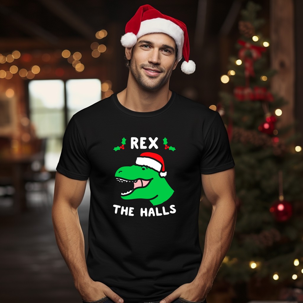 Celebrate the holiday season with our “Rex The Halls” Dinosaur Christmas T-Shirt! Perfect for dinosaur lovers and festive spirits alike, this fun and quirky design features a playful T-Rex sporting a Santa hat and holly, making it an ideal choice for casual wear, themed events, or just spreading some Christmas cheer. Made for those who want to showcase their love for dinosaurs and the holidays, this shirt is not only eye-catching but also comfortable and perfect for all-season wear.