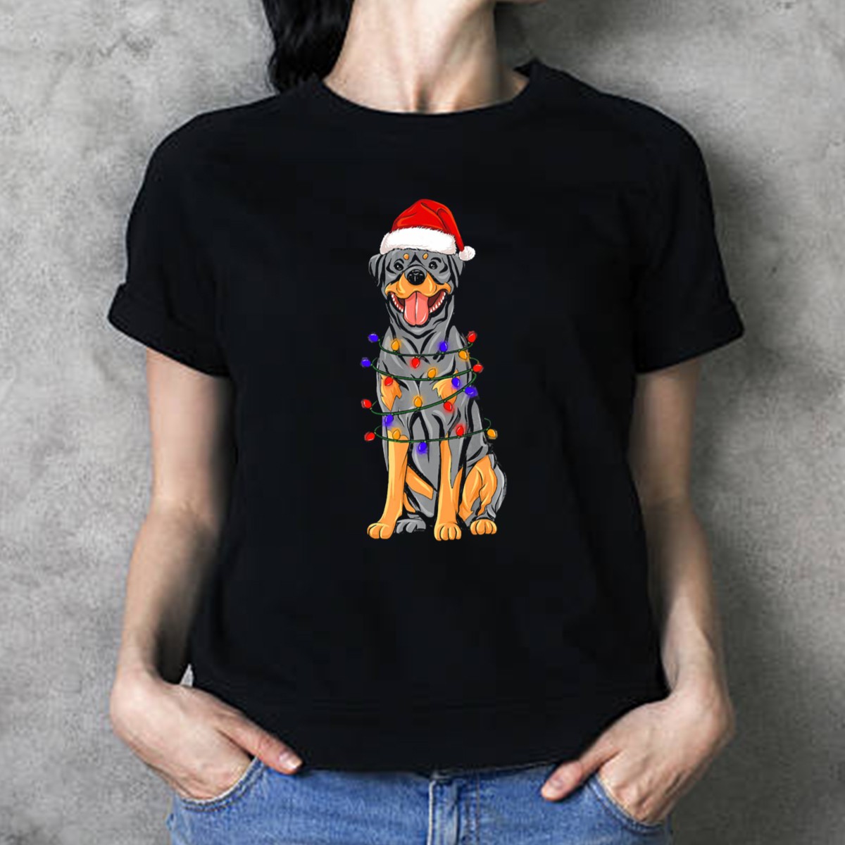 Celebrate the festive season with our Rottweiler Christmas Santa Hat T-Shirt, a must-have for dog lovers and holiday enthusiasts alike! This playful design features an adorable Rottweiler donning a Santa hat, beautifully wrapped in colorful Christmas lights, making it perfect for casual gatherings, themed events, or just spreading holiday cheer. Crafted for comfort and style, this fan-made design is printed in the USA, ensuring you stand out during the most wonderful time of the year.